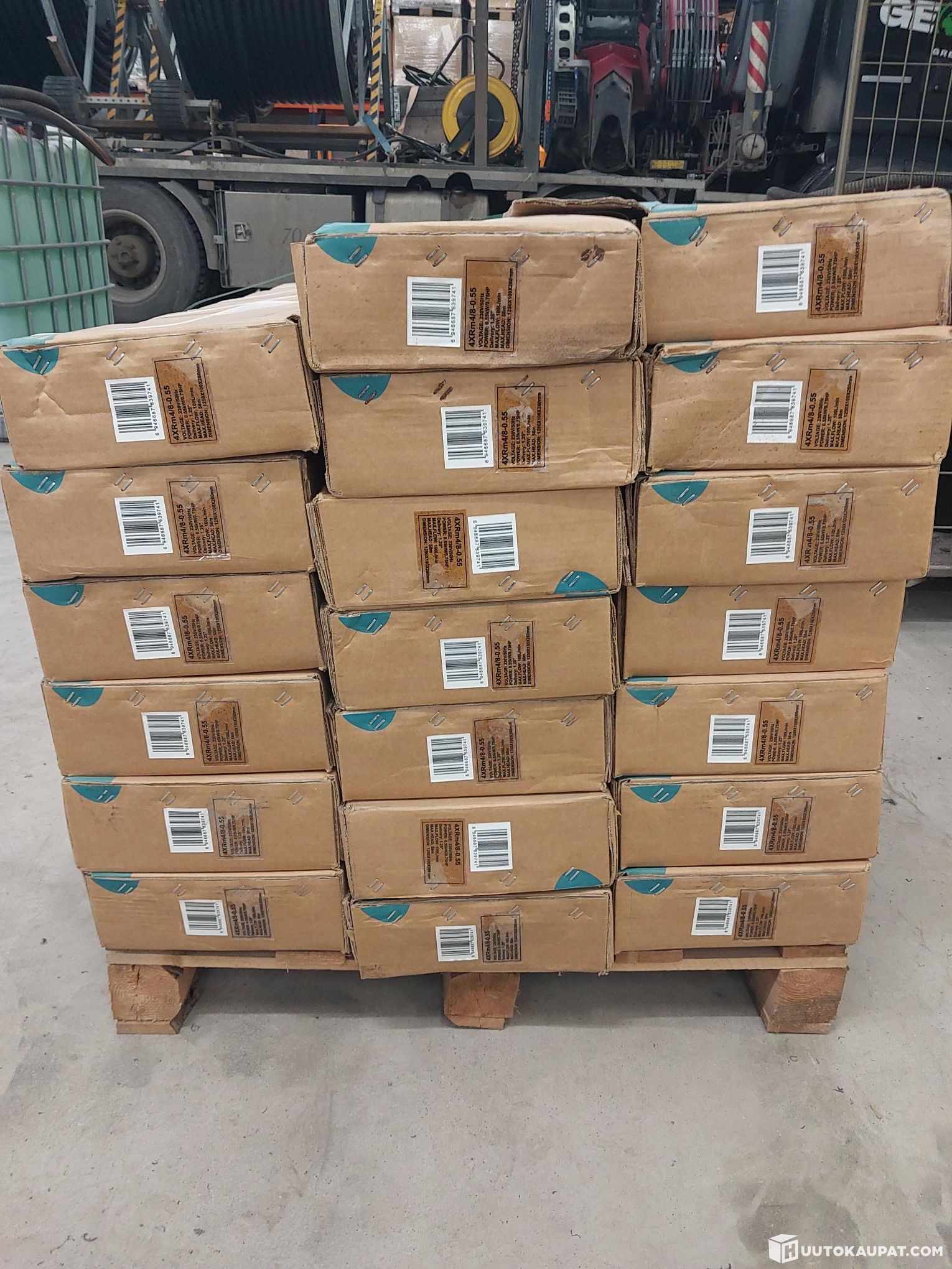 Varastontyhjennyserä, 20kpl avaamattomissa paketeissa olevia porakaivopumppuja. Laatikko sisältää kaapelin, ohjainyksikön, ohjeet sekä pumpun.