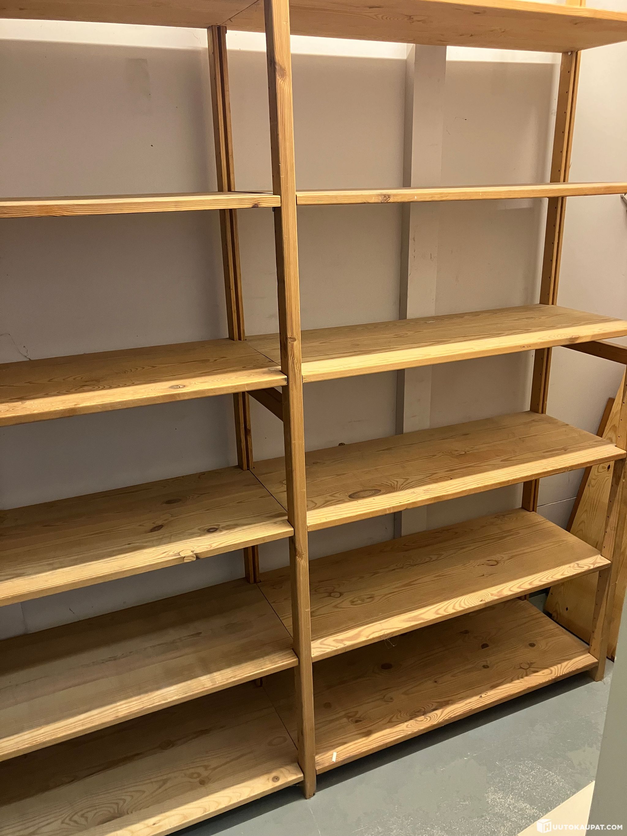 Myydään mallia vanhempi Lundia kokonaisuus. Hyllyissä selkeitä kulumisen jälkiä (naarmuja, käytönjälkiä, jne.), mutta tukeva kokonaisuus. Hyllyt ovat lakkaamattomia, ns. varastomallia.