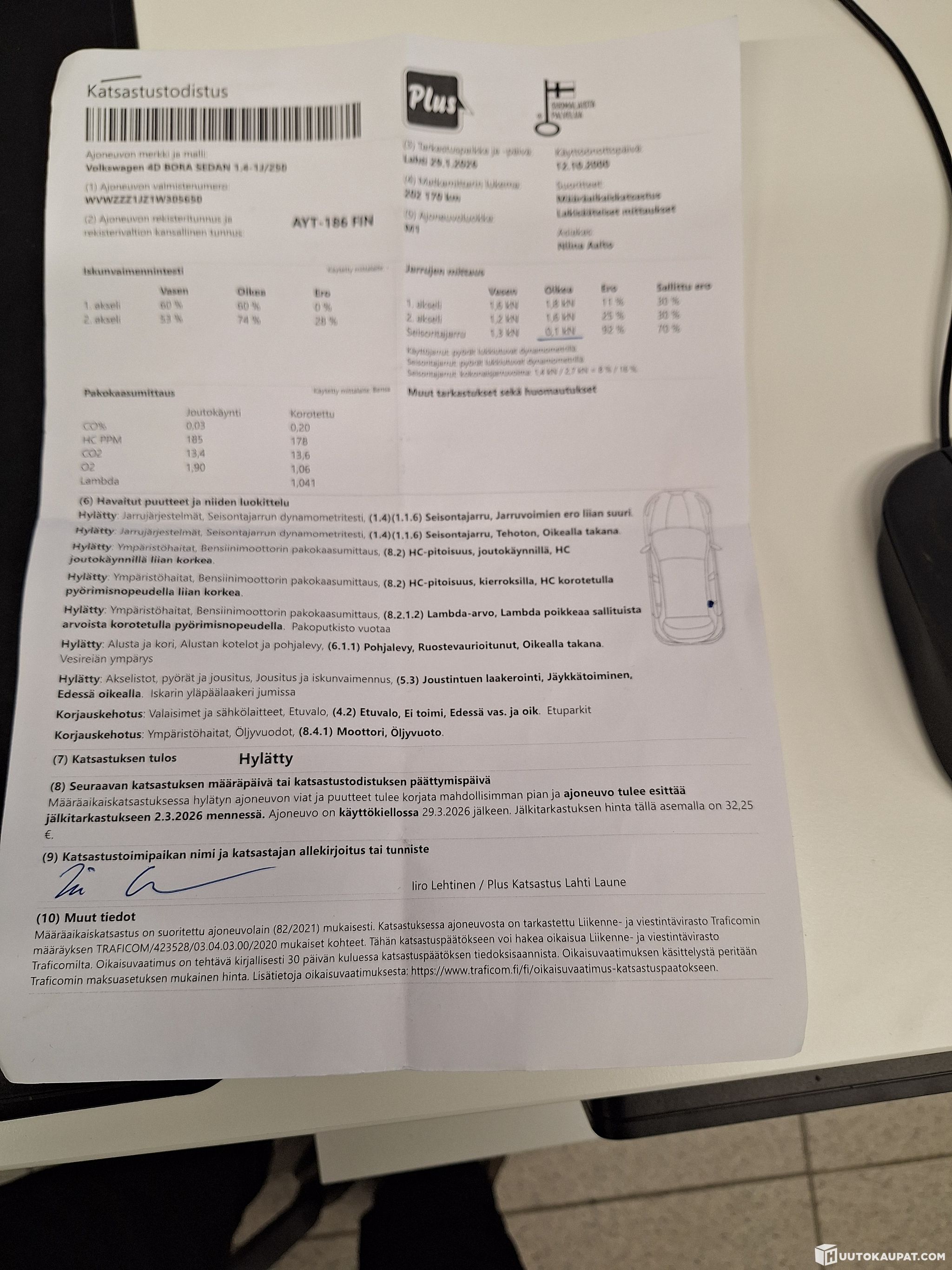 Auto on hylätty katsastuksessa kts syyt!!!
