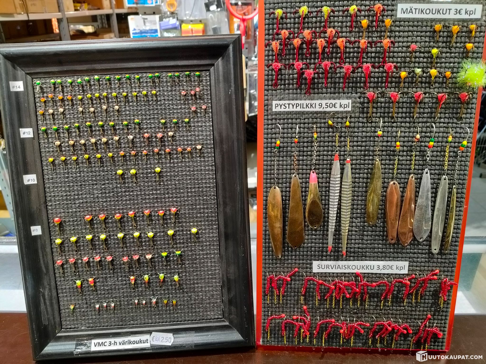 Huippuerä väri-, mäti- ja surviaiskoukkuja sekä pystypilkkejä. Yhteensä 209 kpl.