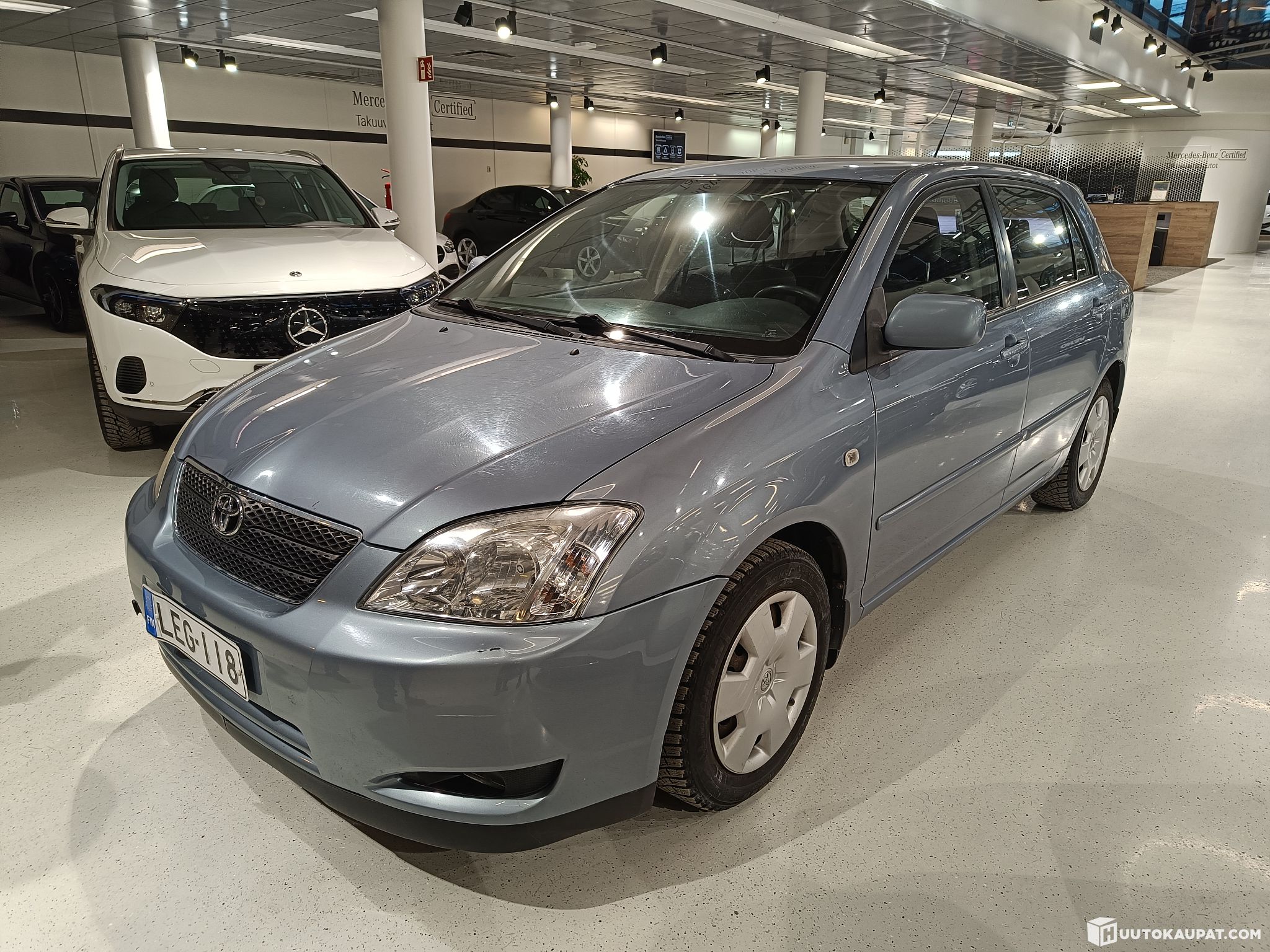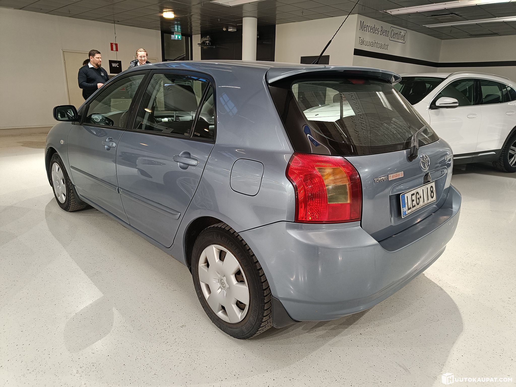 Nyt huudettavana automalli josta löytyy useita rakkaita muistoja ja tarinoita jokaisesta suomalaisesta suvusta. Kyseessä on vuoden 2003 Corolla pommin kestävällä 1,6 VVT-i ketjukoneella ja aikanaan kunnioitusta herättävällä Linea Sol varustetasolla. Corolla on parhaat päivänsä jo nähnyt, mutta näin vähän ajettuna sillä on vielä paljon kilometrejä edessä, kunhan koriin hitsailee muutaman ratsulapun. Värinä tässä on suomalaiseen sielunmaisemaan täydellisesti käyvä arjenharmaa metalliväri jossa ripaus kotimaista sinitaivasta. Autossa on osittainen huoltokirja jonka merkintöjä on näppärästi jatkettu moottorin suojamuoviin. Renkaat ovat sakkokamaa, saattavat täyttää lain kirjaimen mutta ovat jo niin huonot etten viitsinyt alkaa niitä mittailemaan vaan merkkarin laittomiksi. Edellisessä kodissaan Corolla on ollut vuodesta 2017 joten kiertopalkinnosta ei tämän yksilön kohdalla voida puhua.