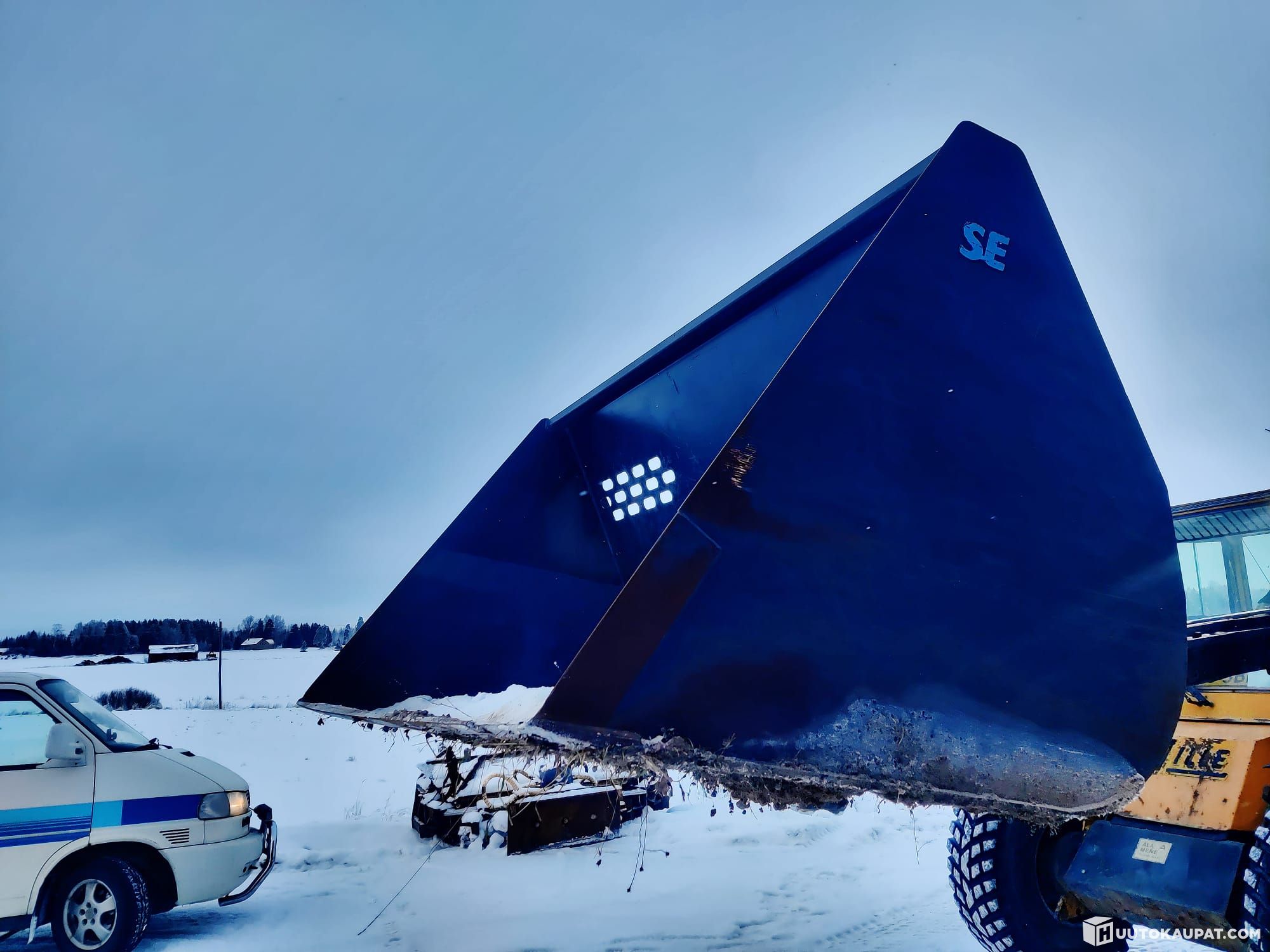 Reilun kokoinen lumikauha tarpeettomana. Käytetty kolmena talvena. Kiinnike Volvo bm.