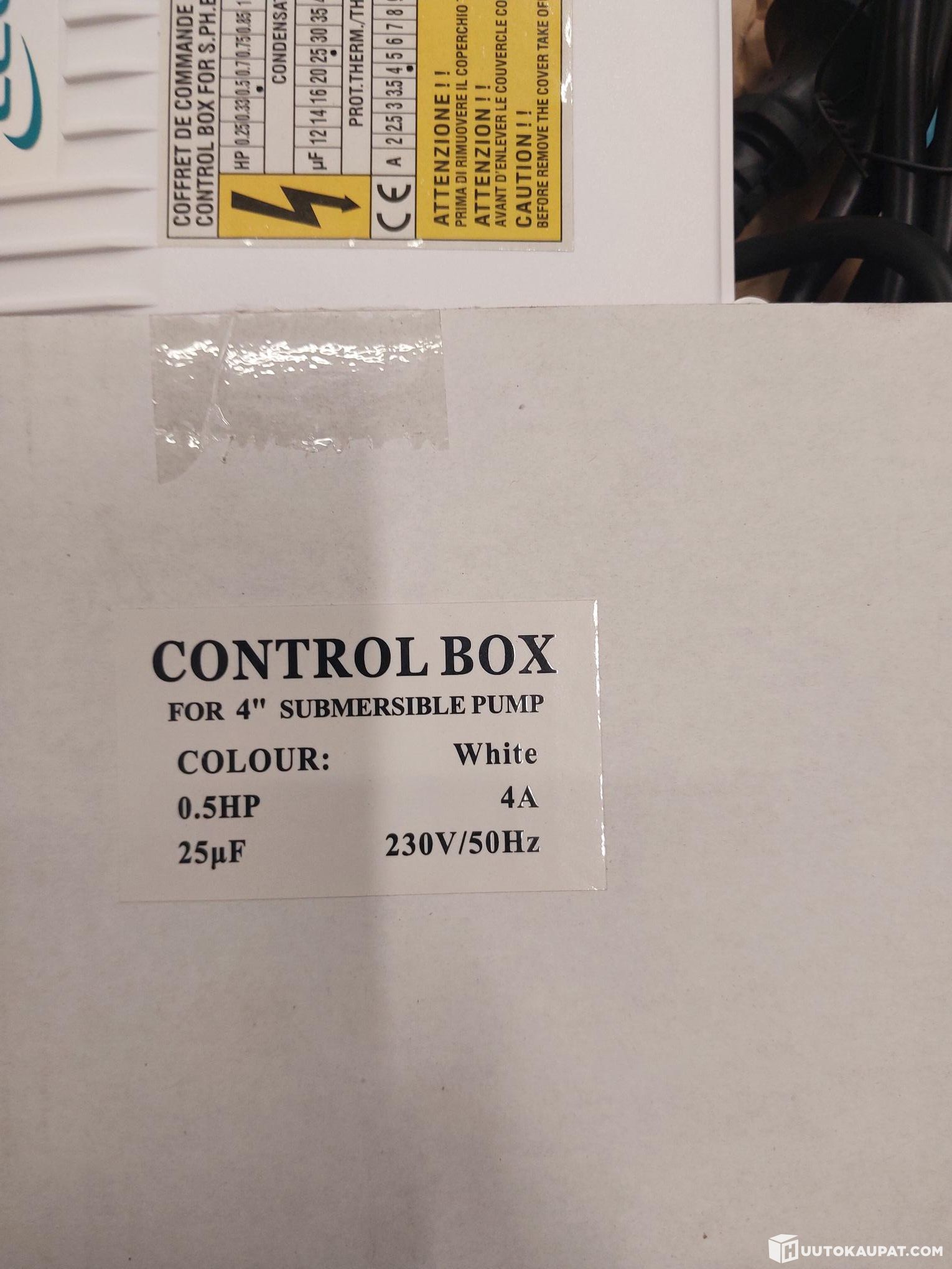 Varastontyhjennyserä, 19kpl avaamattomissa paketeissa olevia porakaivopumppuja. Laatikko sisältää kaapelin, ohjainyksikön, ohjeet sekä pumpun.