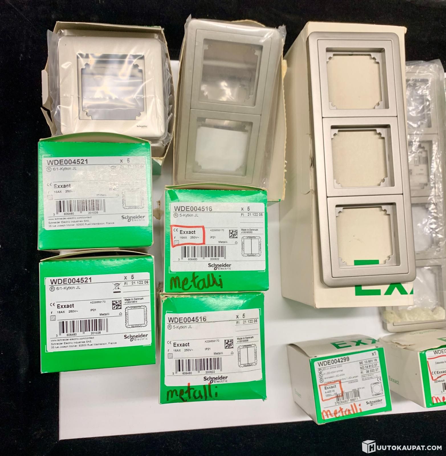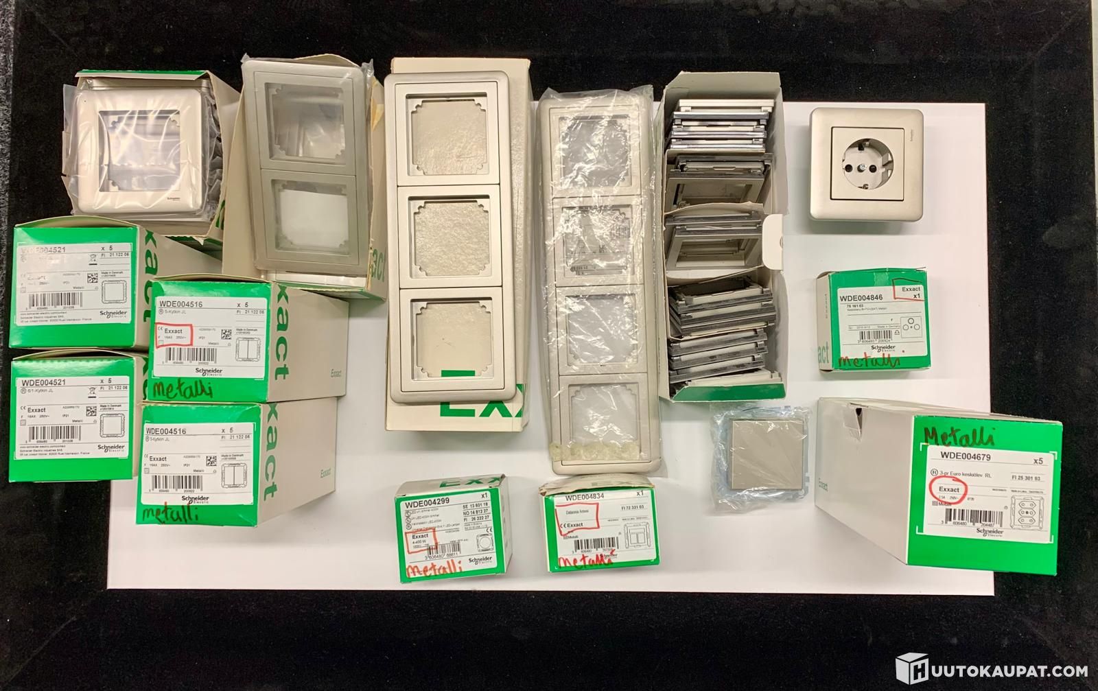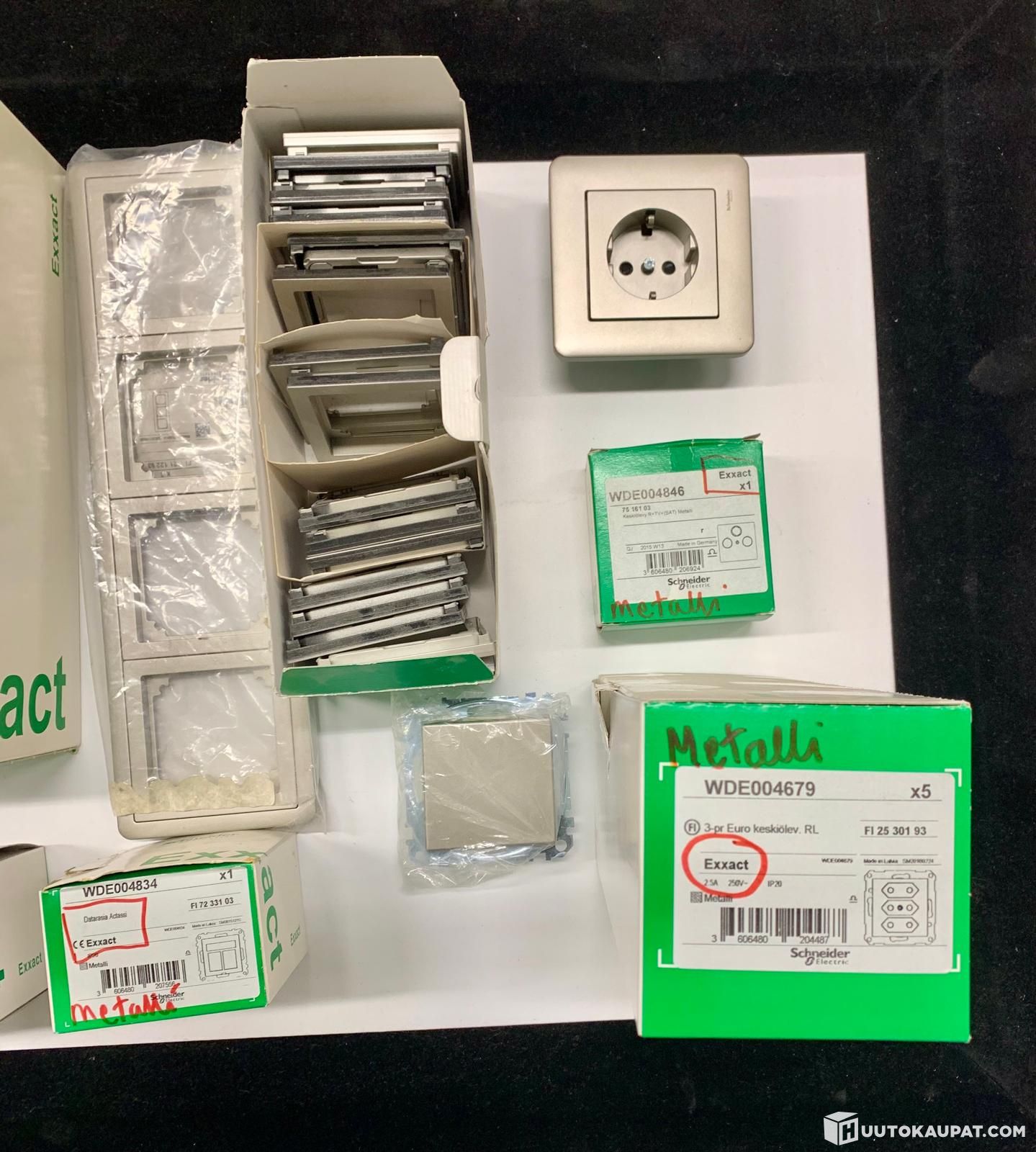 Schneider Exxact metallinvärisiä sähköasennuskalusteita uppoasennus