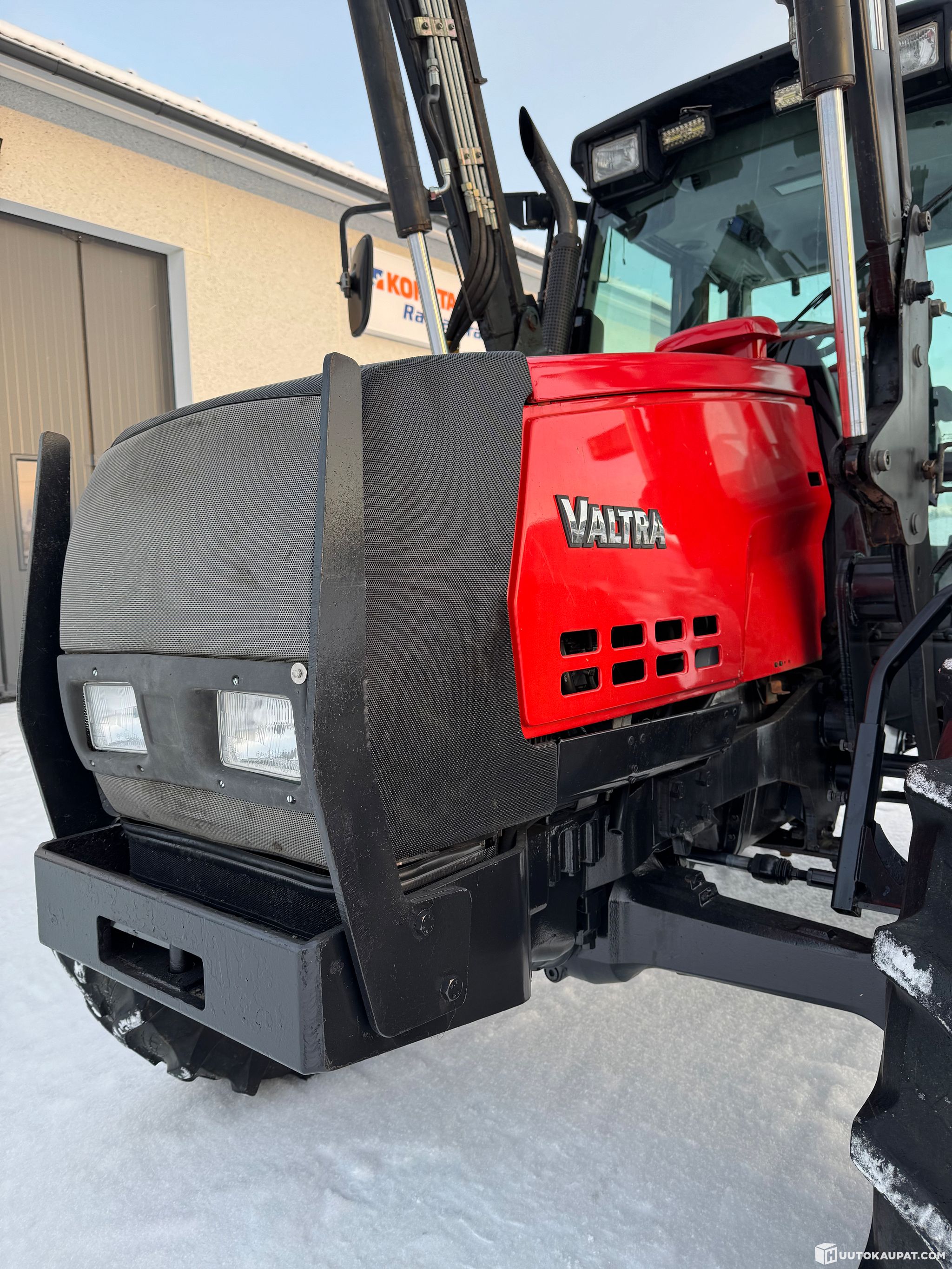 Etukuormain kulunut, hitsailtu ja kehno, vaikka toiminnot pelaa. Vaatii kunnostuksen tai uudet aisat. Sovitteet ja venttiilipöytä kunnossa.