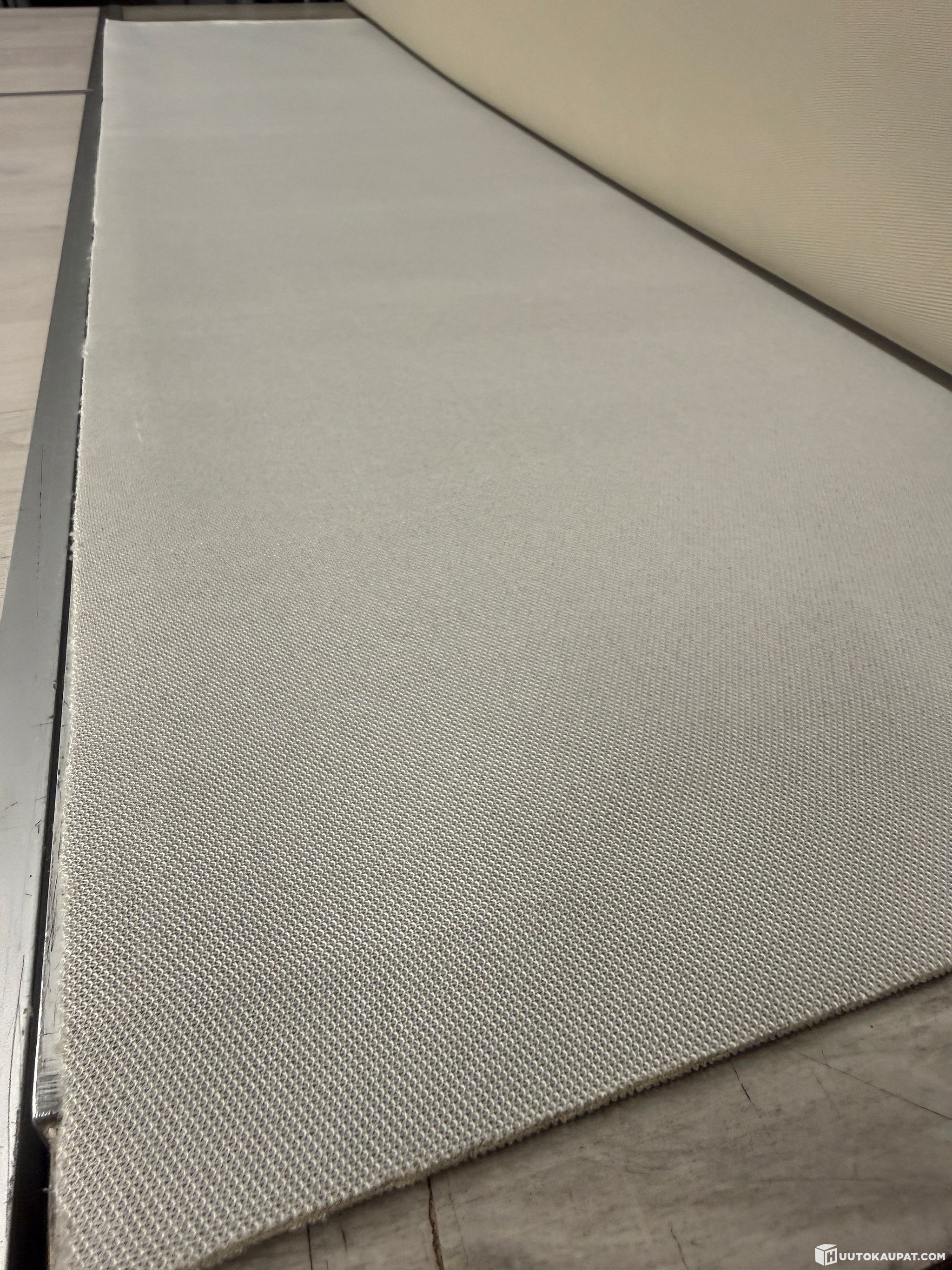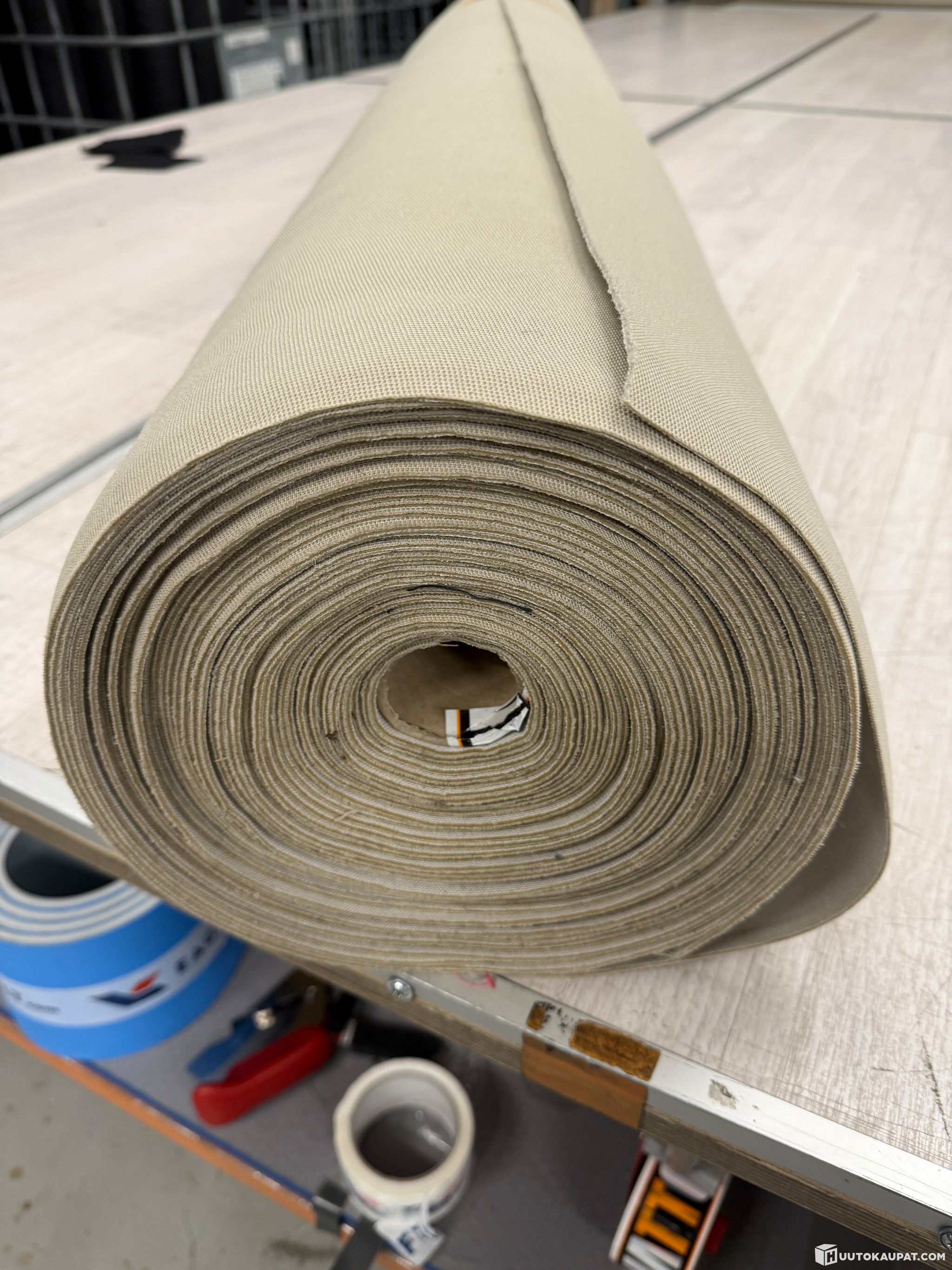 Uutta näyttävää vaaleaa auton sisäkaton verhoilukangasta auton yksityiskohtien verhoiluun, 170 cm leveä, rullan pituus 25,00 m, yhteensä 42,50 m2
