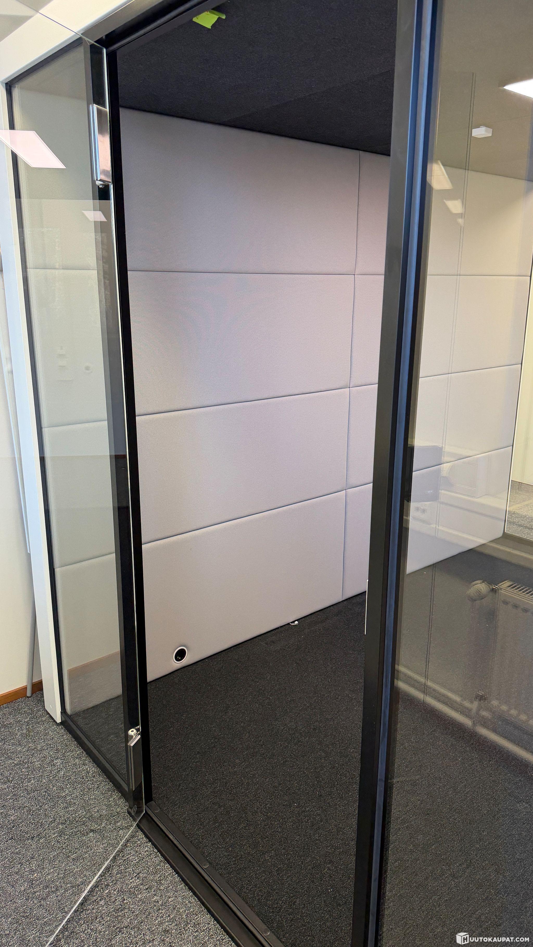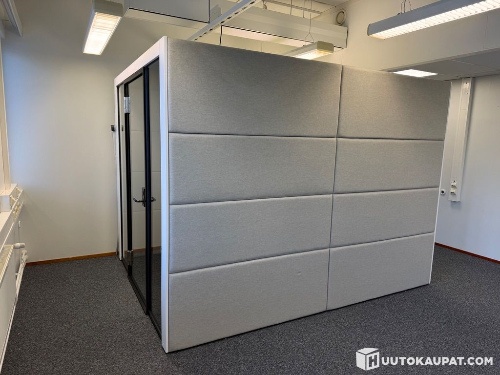 Erittäin hyväkuntoinen kuvien mukainen esteetön läpikuljettava hiljainen neuvottelutila. Tila on noin vuoden ollut käytössä ja myydään toimistotilojen muuton vuoksi. Uuden hinta on 17300€ + ALV + toimitus ja kasaus. Liitteenä alkuperäinen hankintalasku.