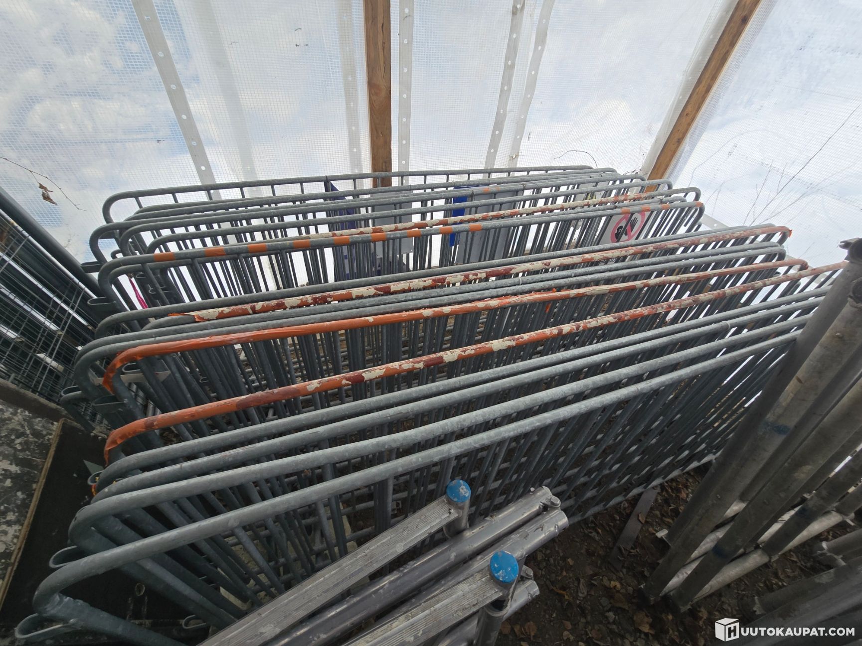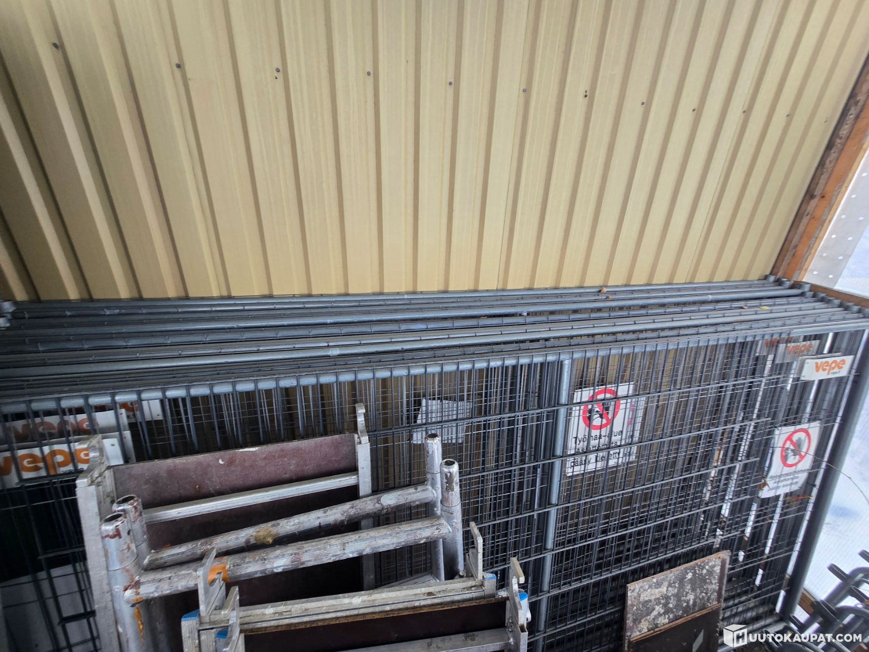Erä työmaa aitaa ja näihin jalustat.