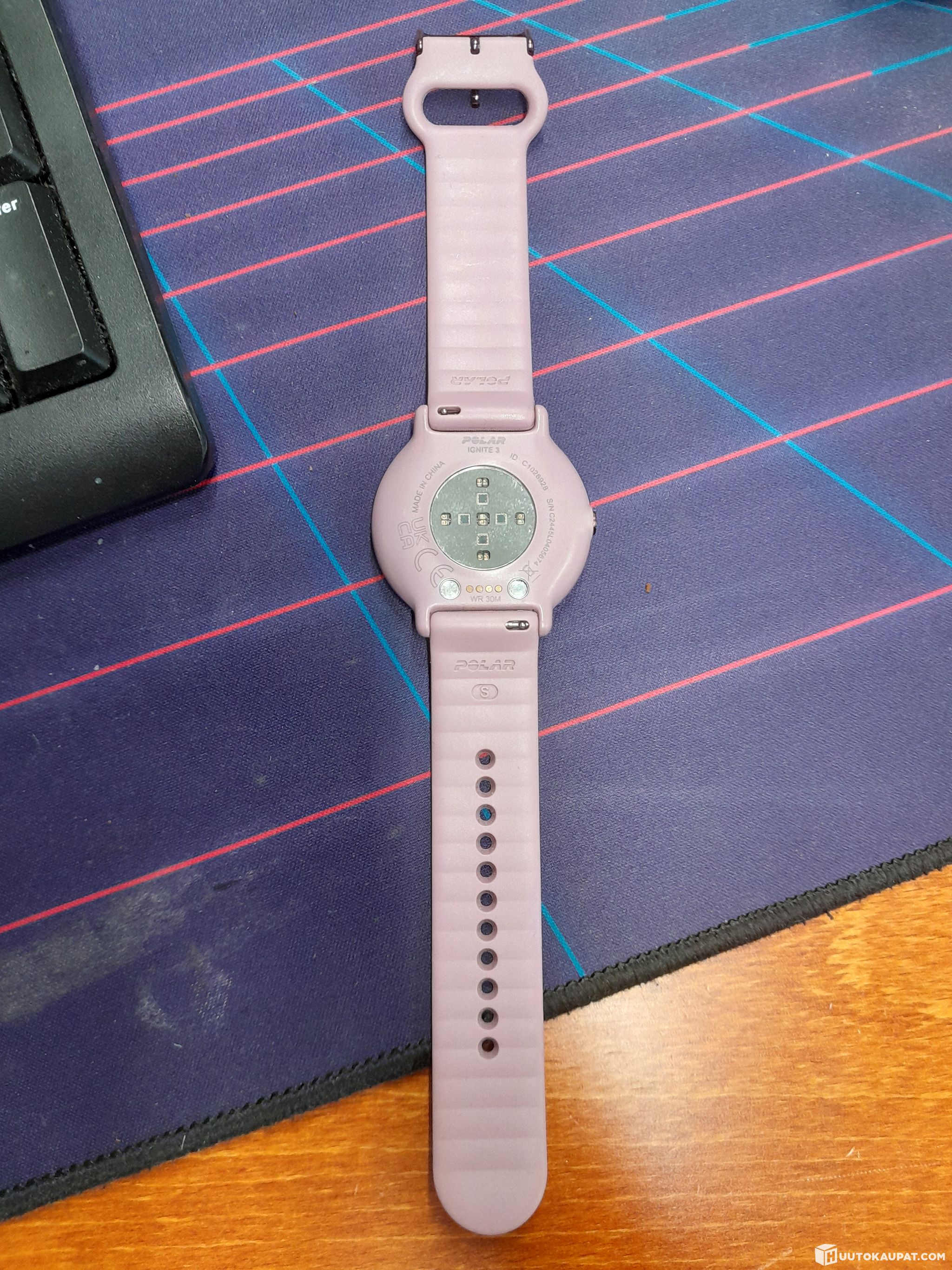 Käytetty, pientä pintanaarmua näytössä mutta muuten ok, ei laturia. Laturin saa irrallaan kelloa myyvistä elektroniikkaliikkeistä. Ranneke kokoa S.