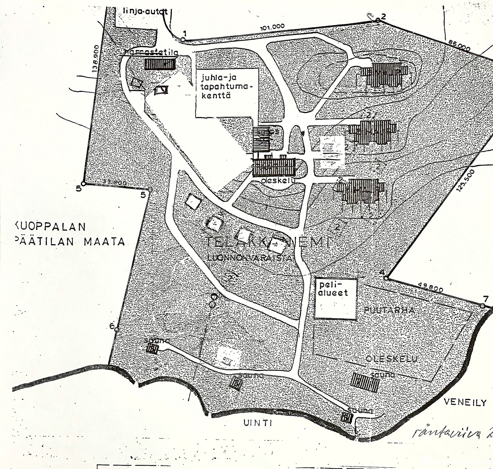 Rakennusoikeus 1800 krs-m2/ar, lisäksi kaksi saunarakennuksen rakennuspaikkaa kaavassa.