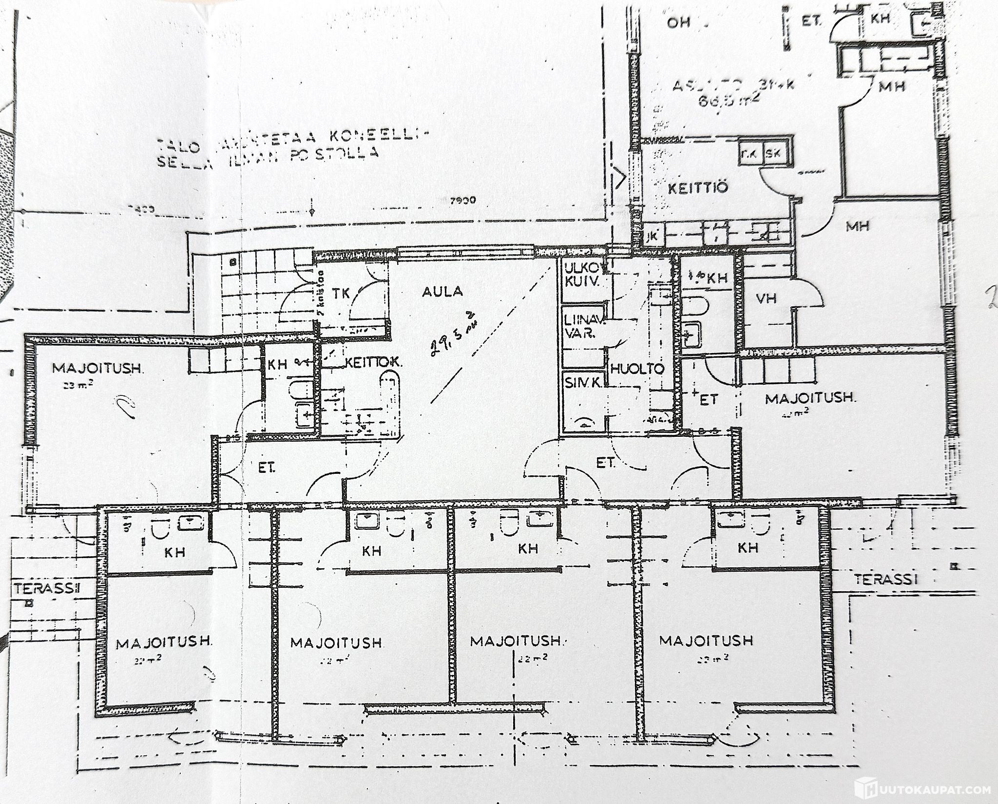 Keskitalo: Rakennusvuosi 1988 pinta-ala 216 m2. 6mh + 6 kph/wc, yhteiskeittiö. Puurakenteinen, kattolämmitys (sähkö) ja huoneistokohtaiset ilmalämpöpumput.