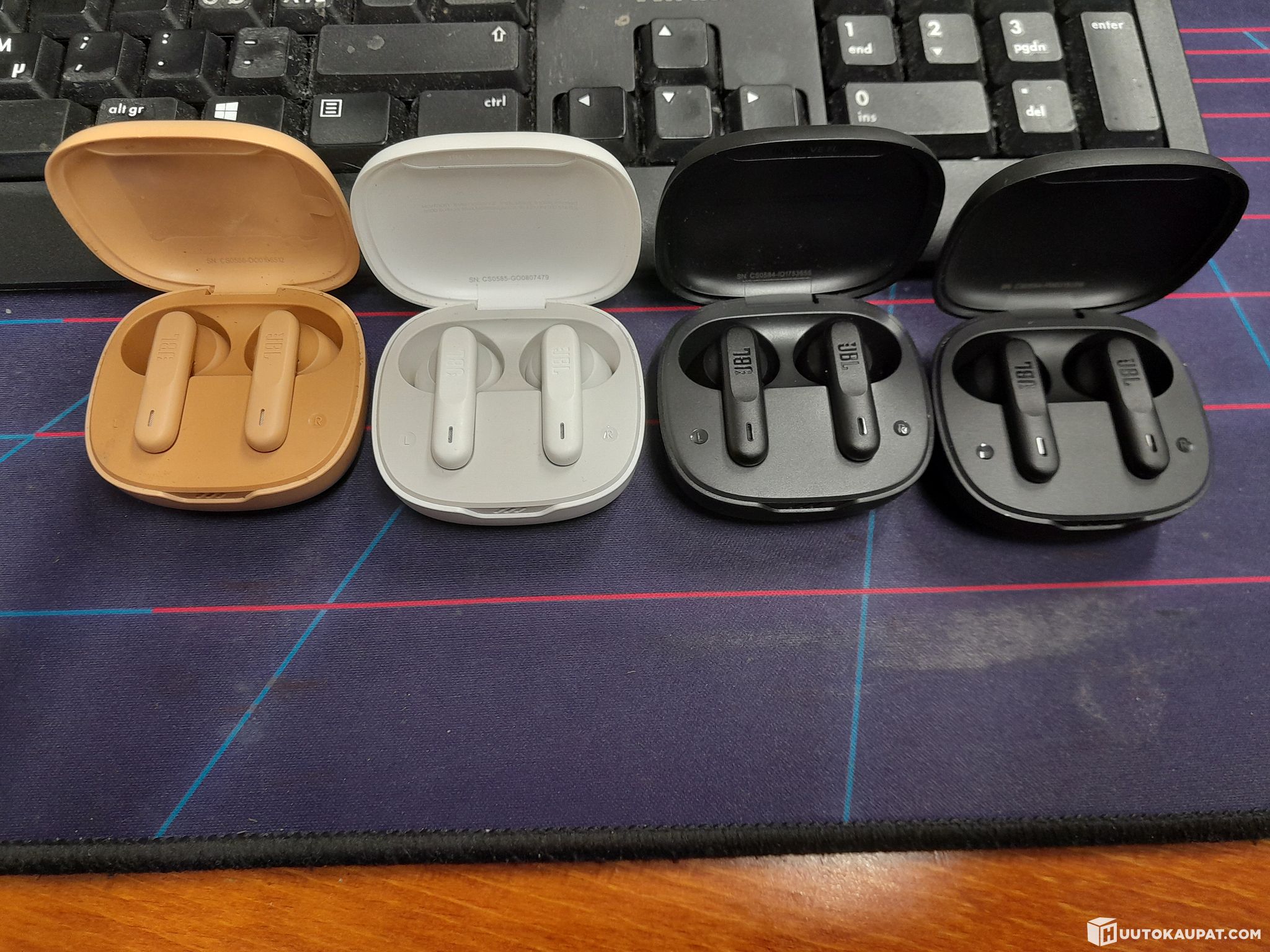 Käytettyjä, mukana napit, latauskotelot ja laturit.
