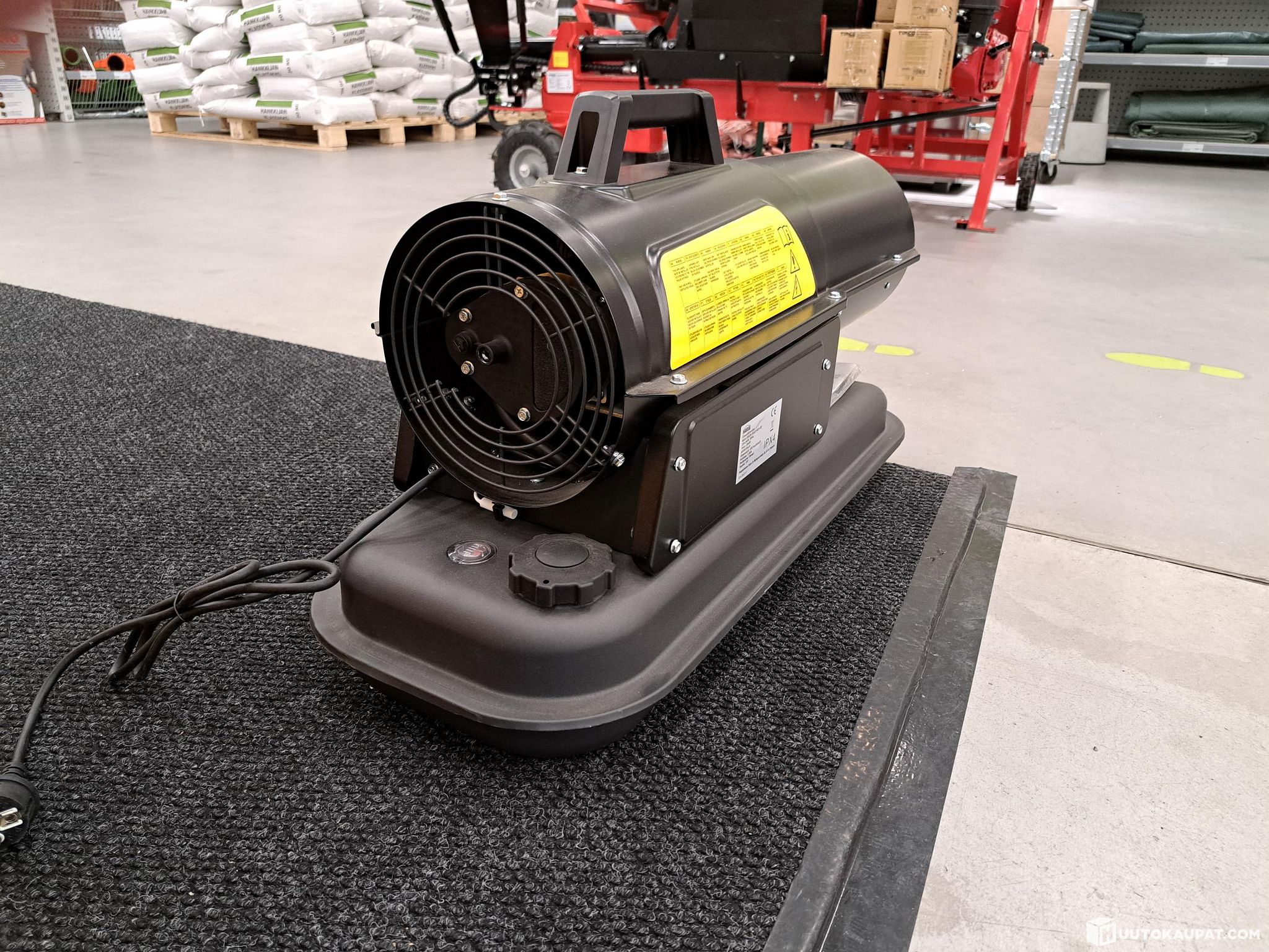 Tehokas ElectroGEAR-diesel-lämmitin suurten hyvin tuuletettujen tilojen, kuten hallien lämmittämiseen. Kannettava malli ilman pyöriä. Teho 20 kW.
