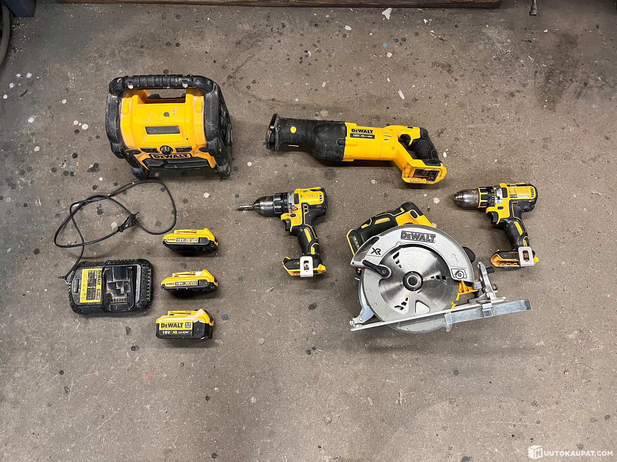 Kaikki työkalut toimivat, akuissa puhtia ja laturi toimii.