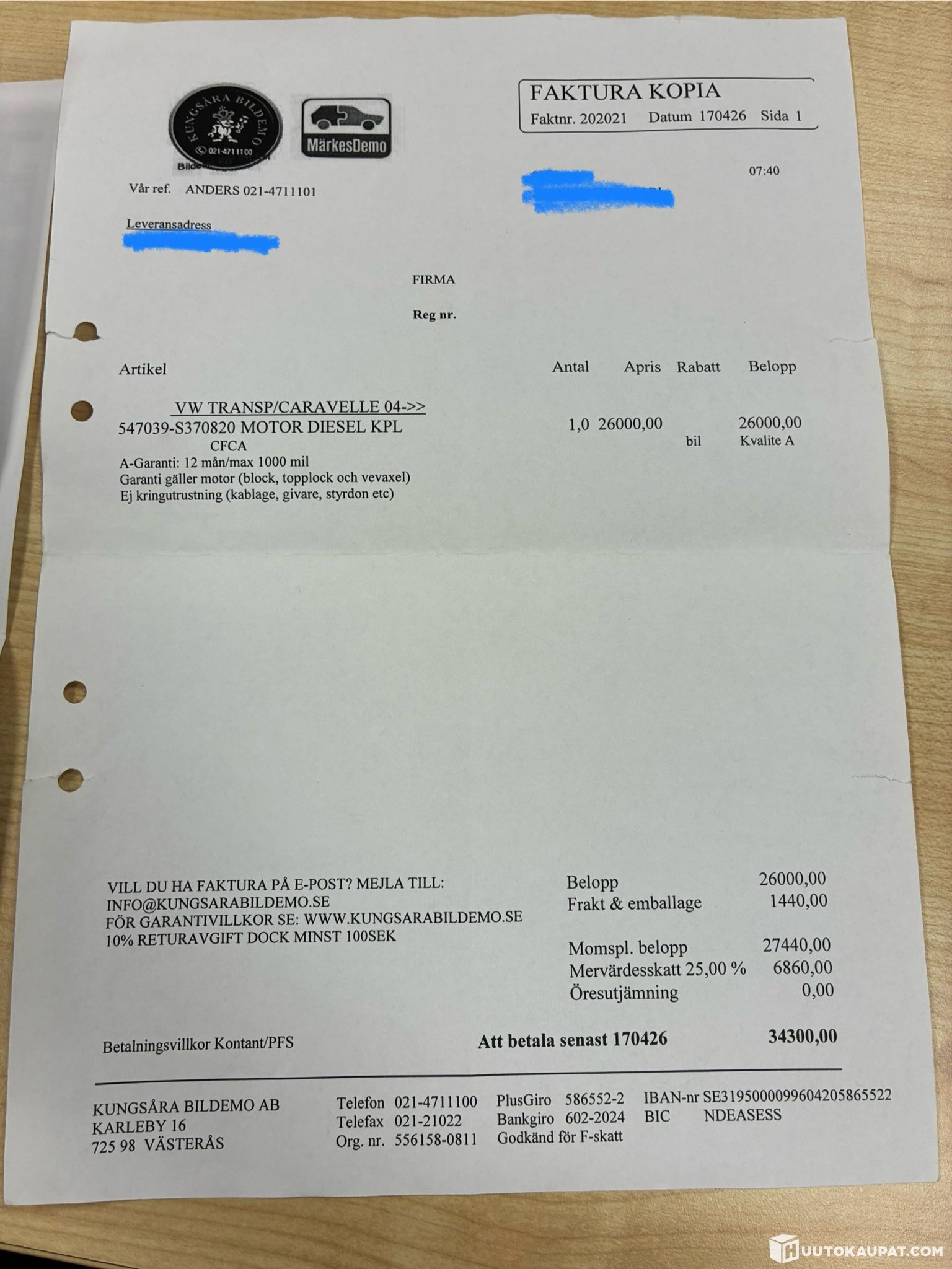 Auto Åman Oy ilmoittaa, Huutokaupat.com myy