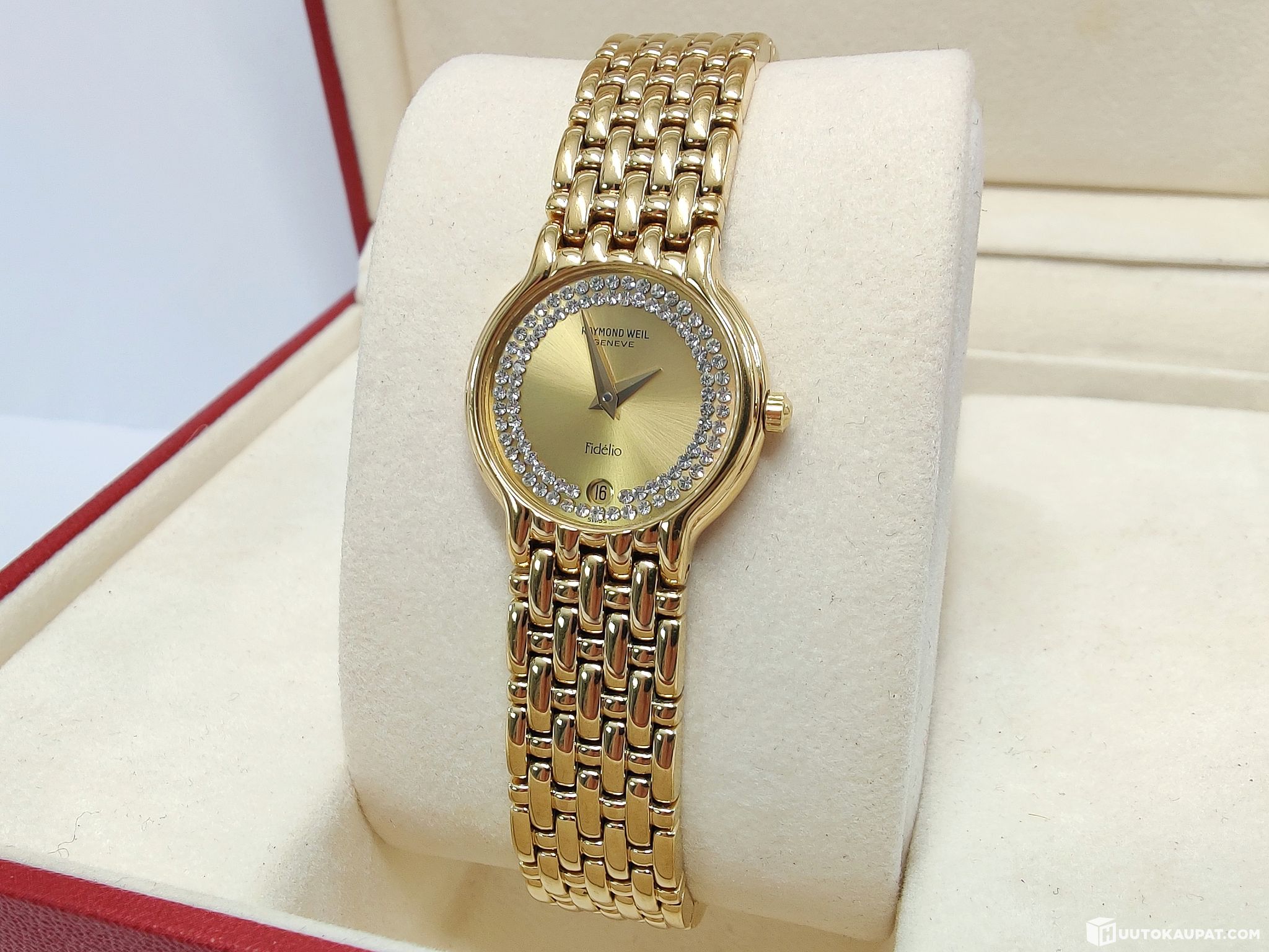 Kaunis ja elegantti sveitsiläinen Raymond Weil Fidelio kullattu naisten rannekello.