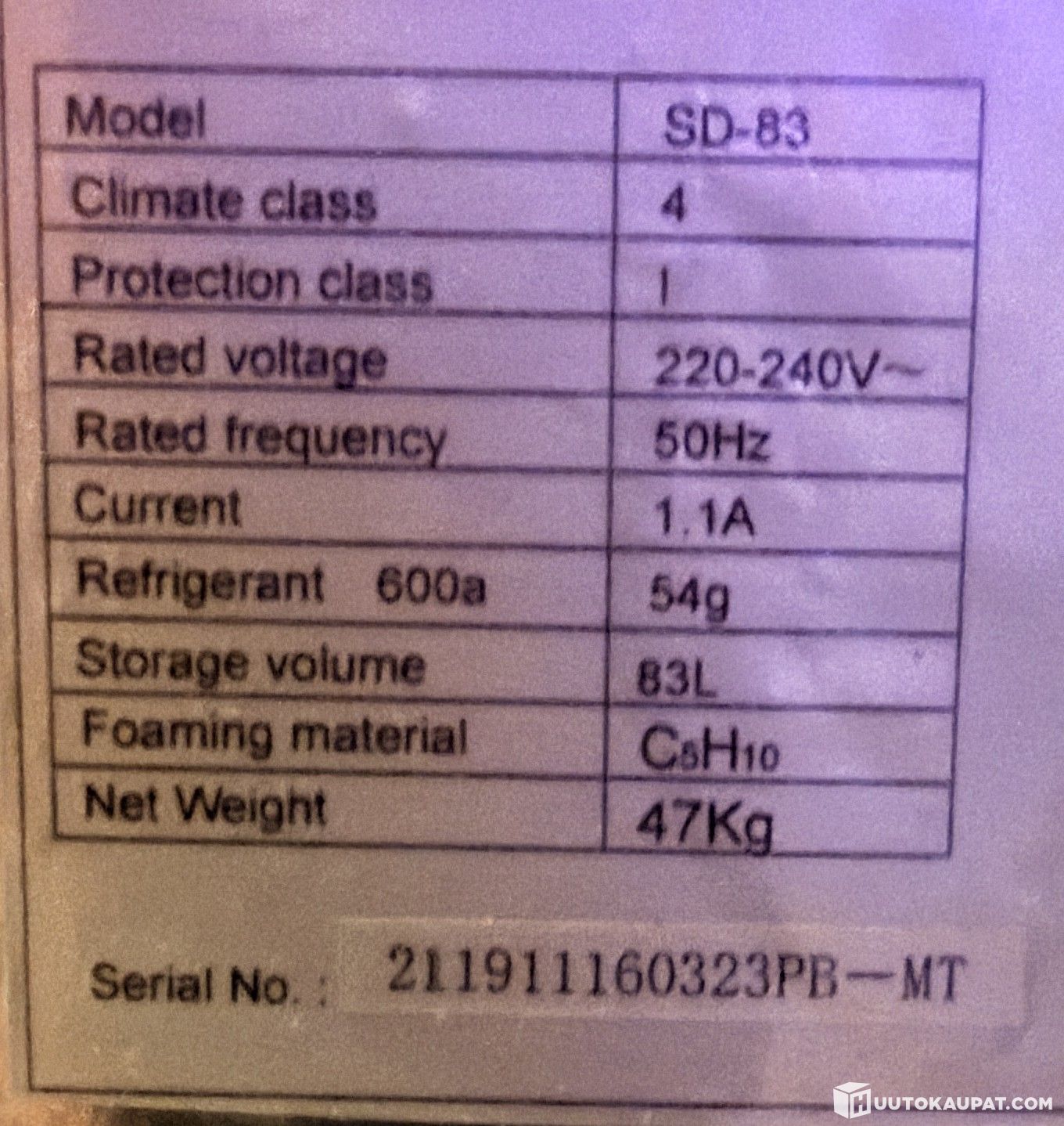 Huutokauppaan sisältyy: