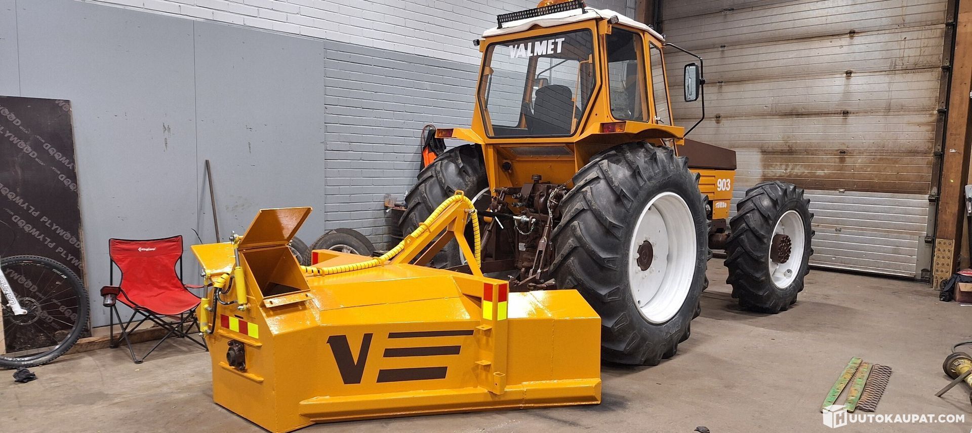 Valmet 903. Jonkun verran laitettu. Yli 40v vanha!Eli aina löytyy jotain, mitä vois vielä laittaa. Kaikki kunnossa ja toimii niinkuin kuuluukin. Suurimmat remontit tehty. Valmis lumitöihin. Jäänastat 3 rivissä joka palassa! Linko kunnostettu!