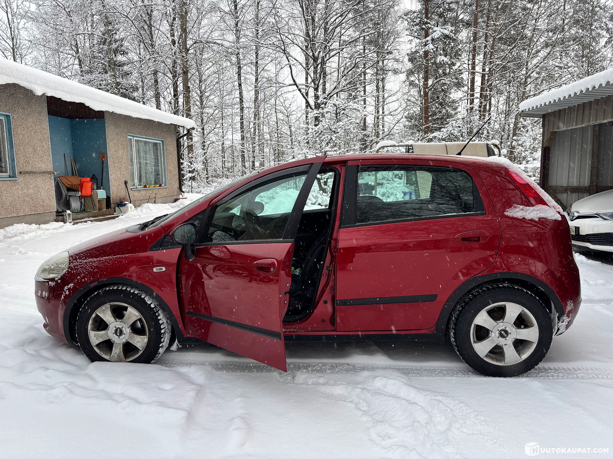 Hyvin pidetty tilava Fiat punto grande, seisonnassa tarpeettomana, kun lapsikatras vaunuineen ei tähän autoon kuitenkaan sopinut.