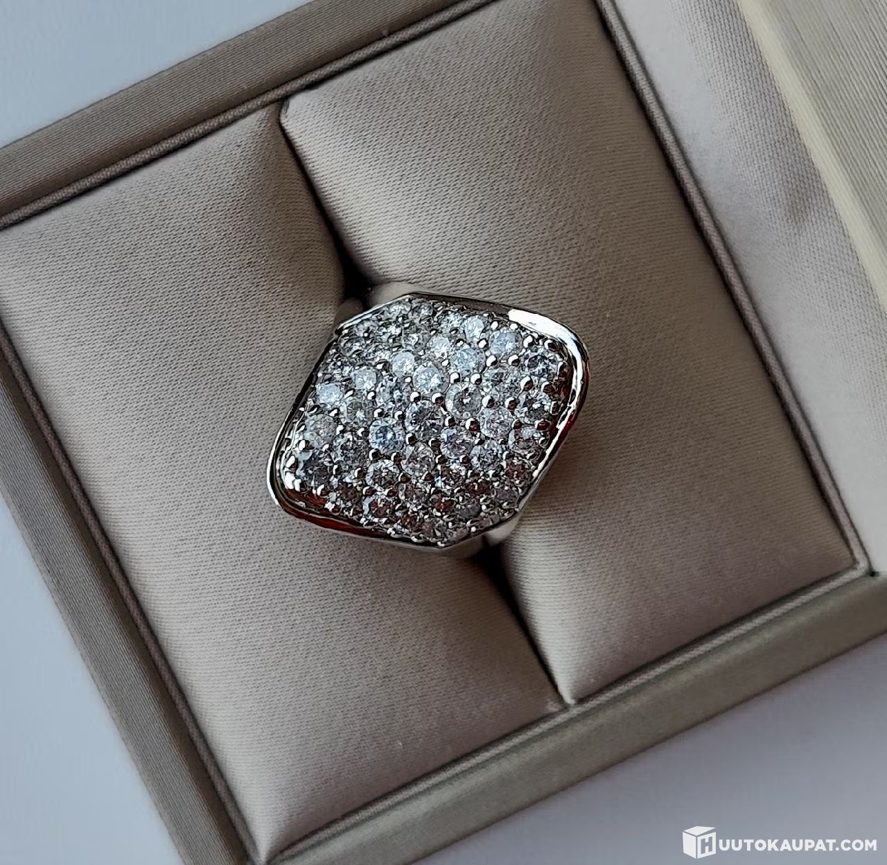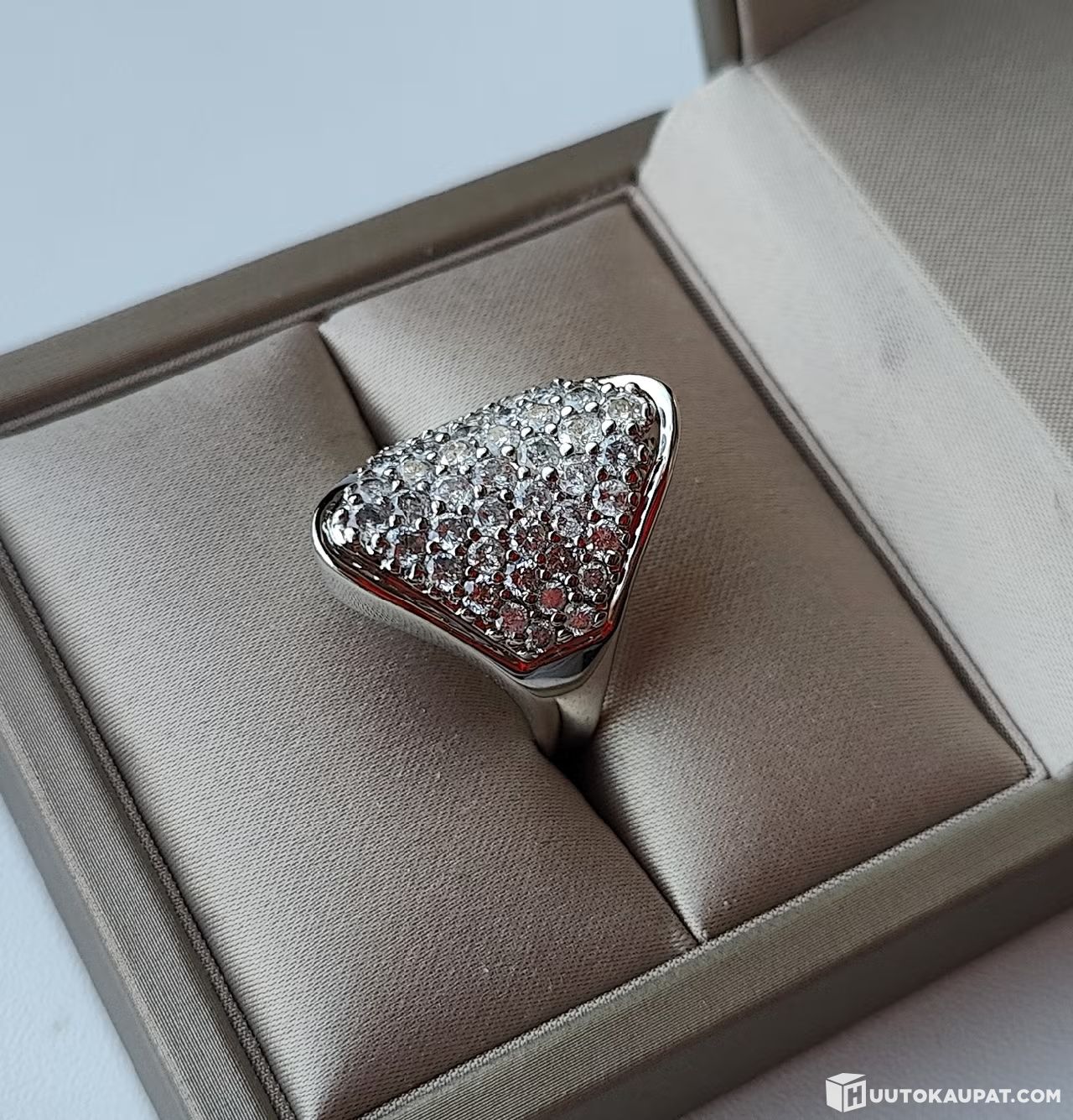 Uudenveroinen 14 karaatin valkokultainen timanttisormus hyvin edullisella lähtöhinnalla. Vain kevyttä käytön jälkeä.