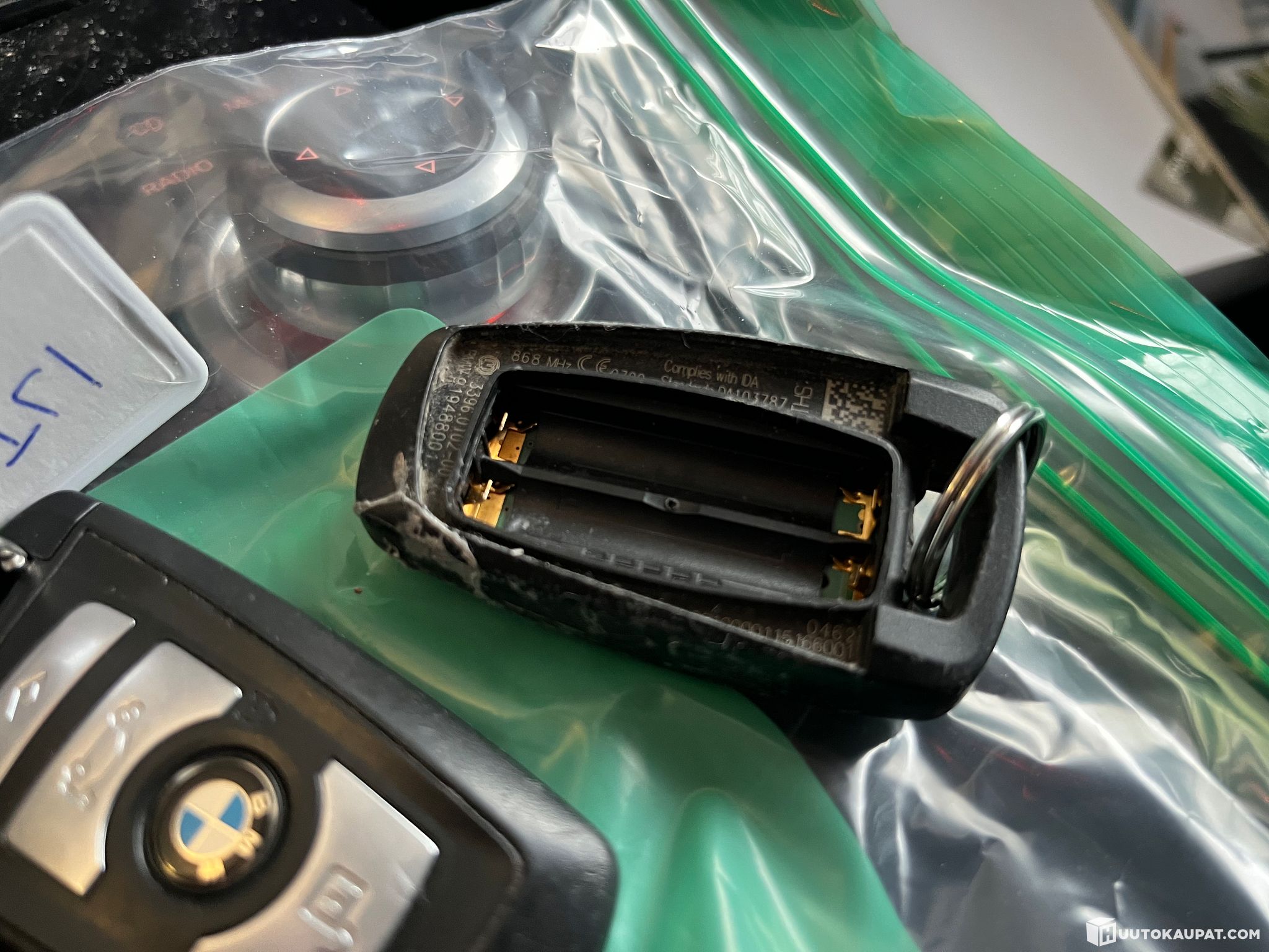Webaston kauko-säätimestä puuttuu paristot ja koko takaosa.