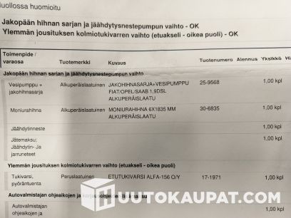 Suomi-auto, Lohkolämmitin ja sisätilanpistoke, Huoltokirja, Kahdet renkaat.