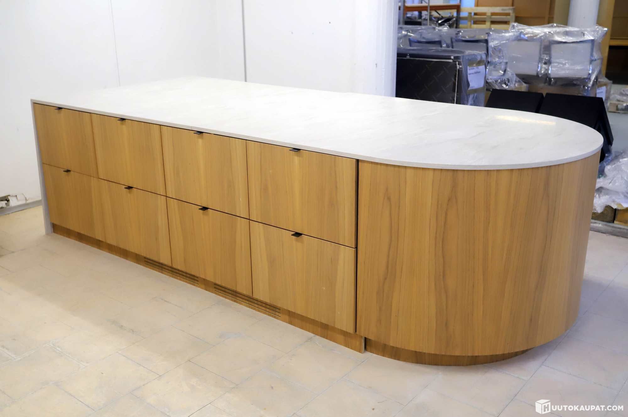 Keittiösaarekkeen mitat: korkeus 90cm, pituus 315cm, syvyys 130cm.