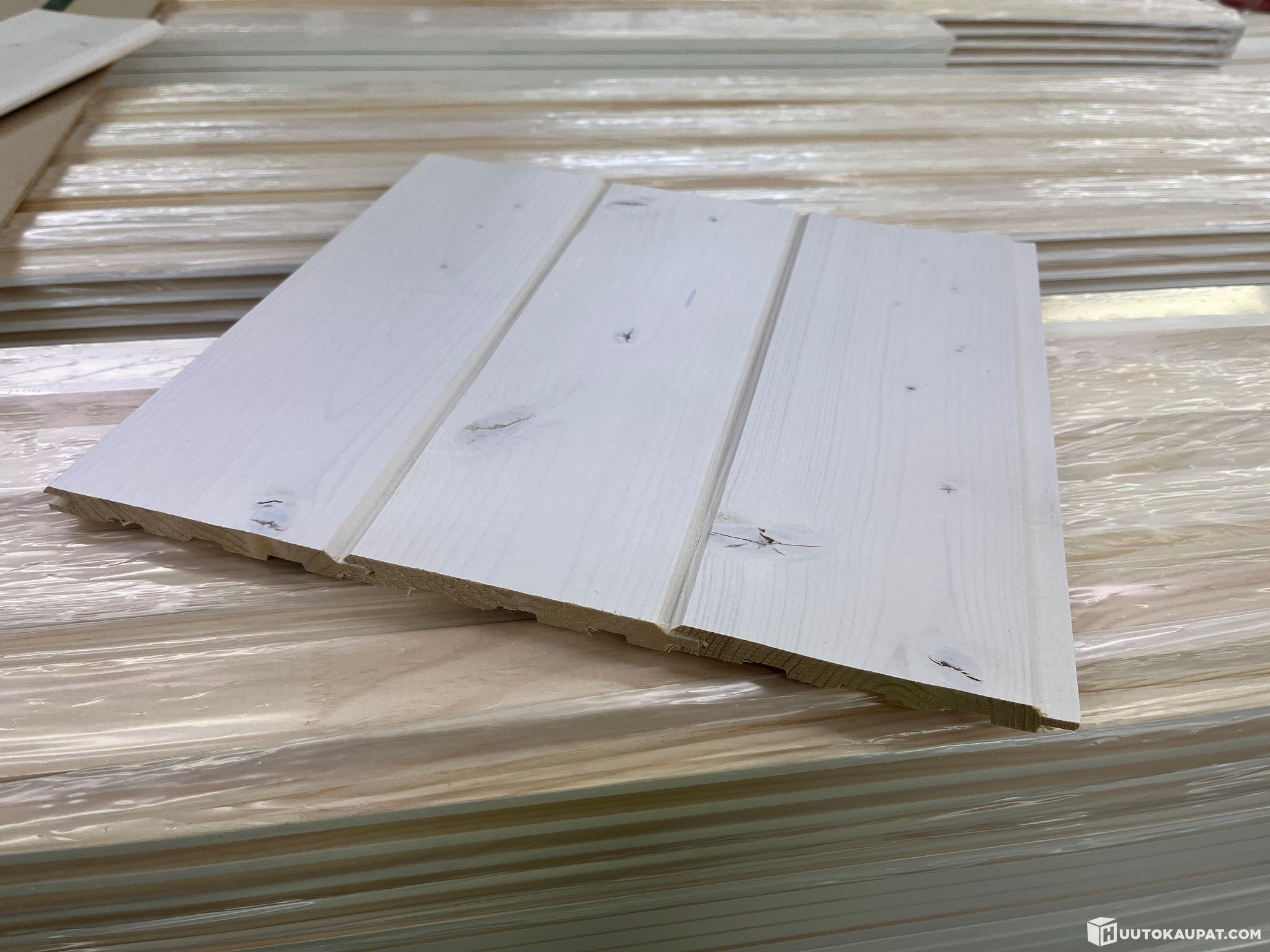 Valkovahattu (Wax Vanilla) sisustuspaneeli, suomalaista puuta ja Suomessa valmistettu. Kuiviin sisätiloihin, myös kodinhoitohuoneet sekä kylpyhuoneen katot. Ei saunaan eikä suoraan vesikosketukseen (suihkun seinä).
