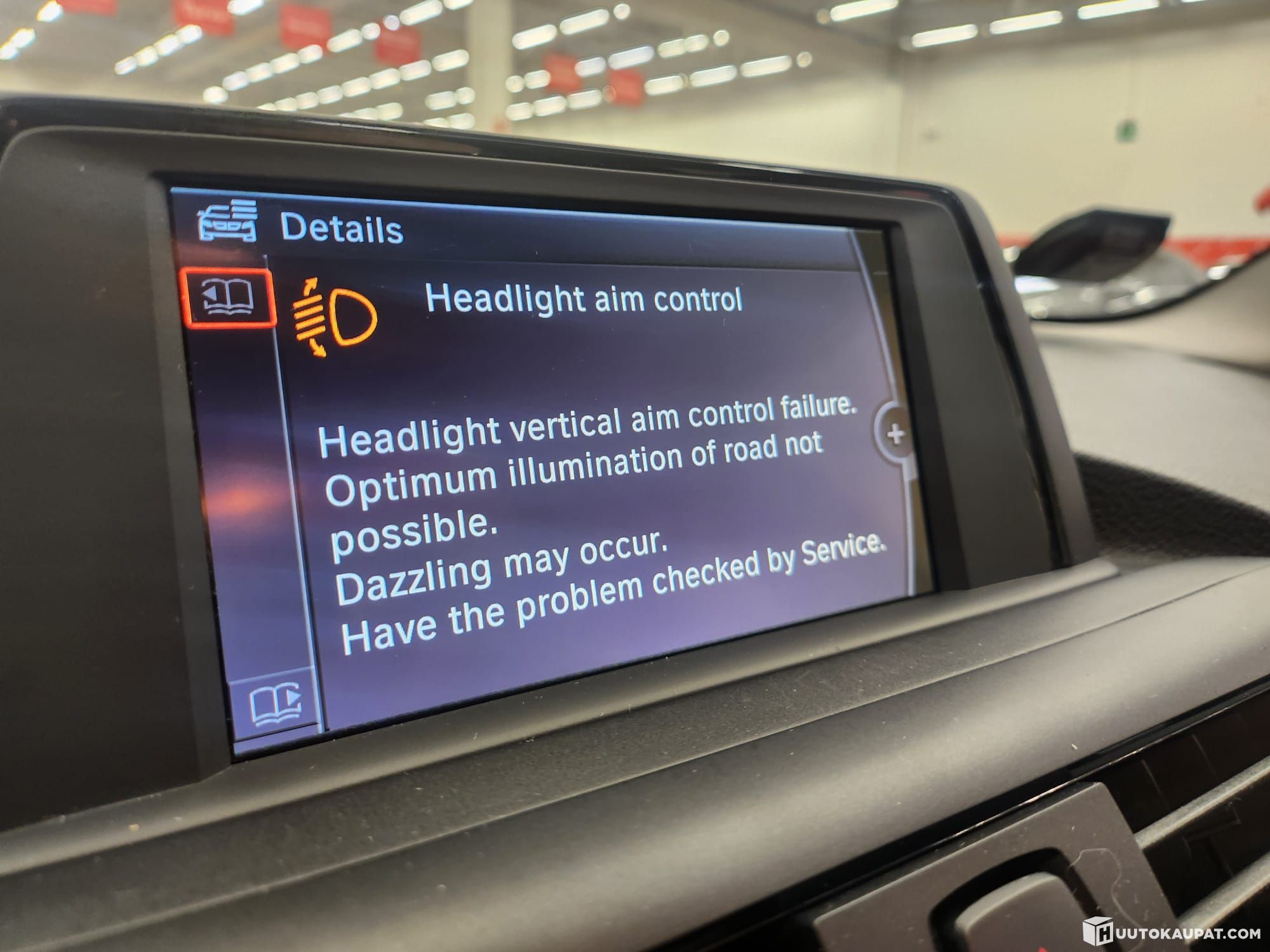 - Vasemmanpuoleinen valo jää itsestään päälle, vaikka valot pois ja ovet kiinni. Liittyy todennäköisesti viimeisessä kuvassa näkyvään vikavaloon.