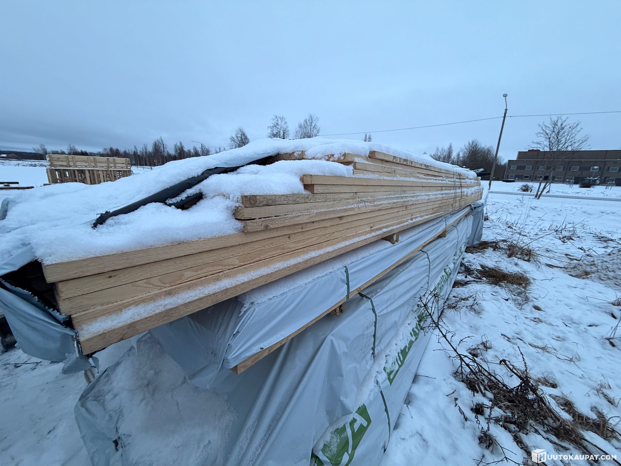 -Paketti auennut ja lunta satanut lautojen päälle.