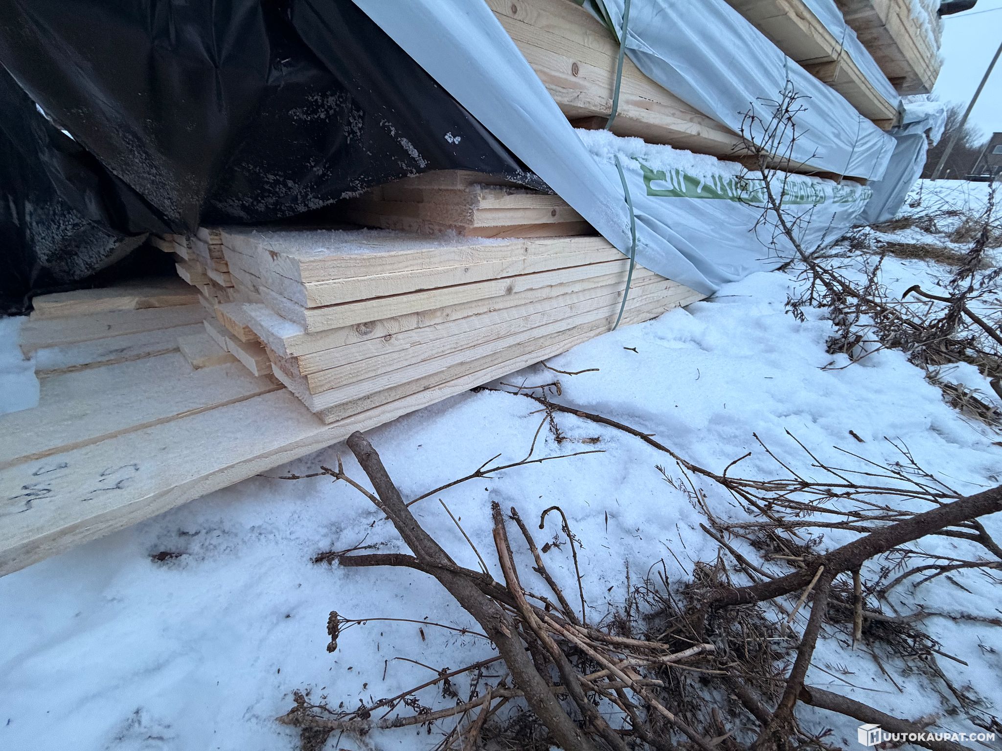 Monikäyttöistä sahatavaraa tehtaan paketissa.