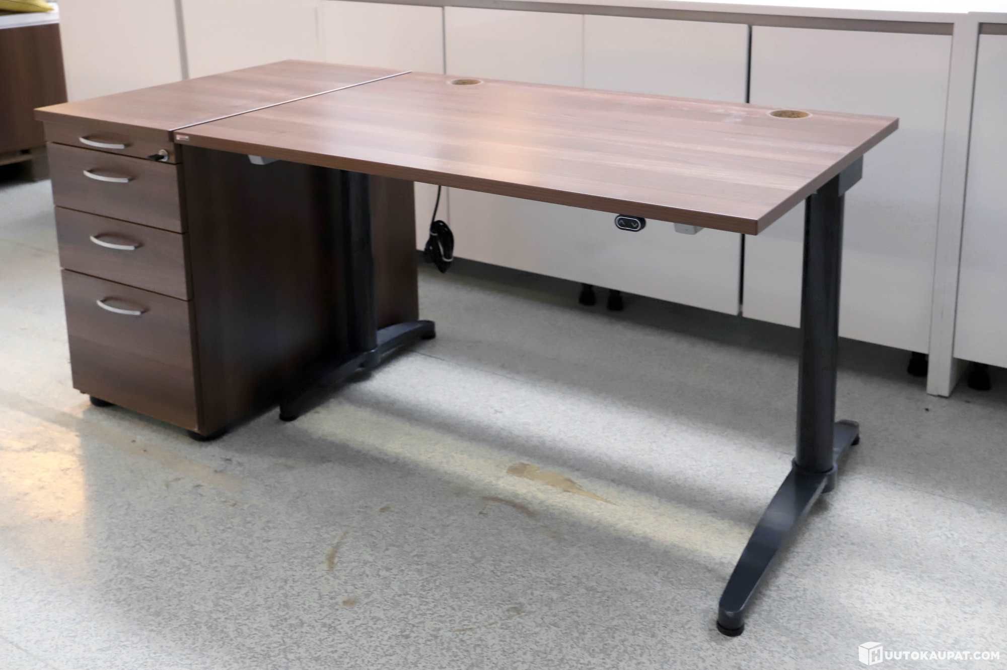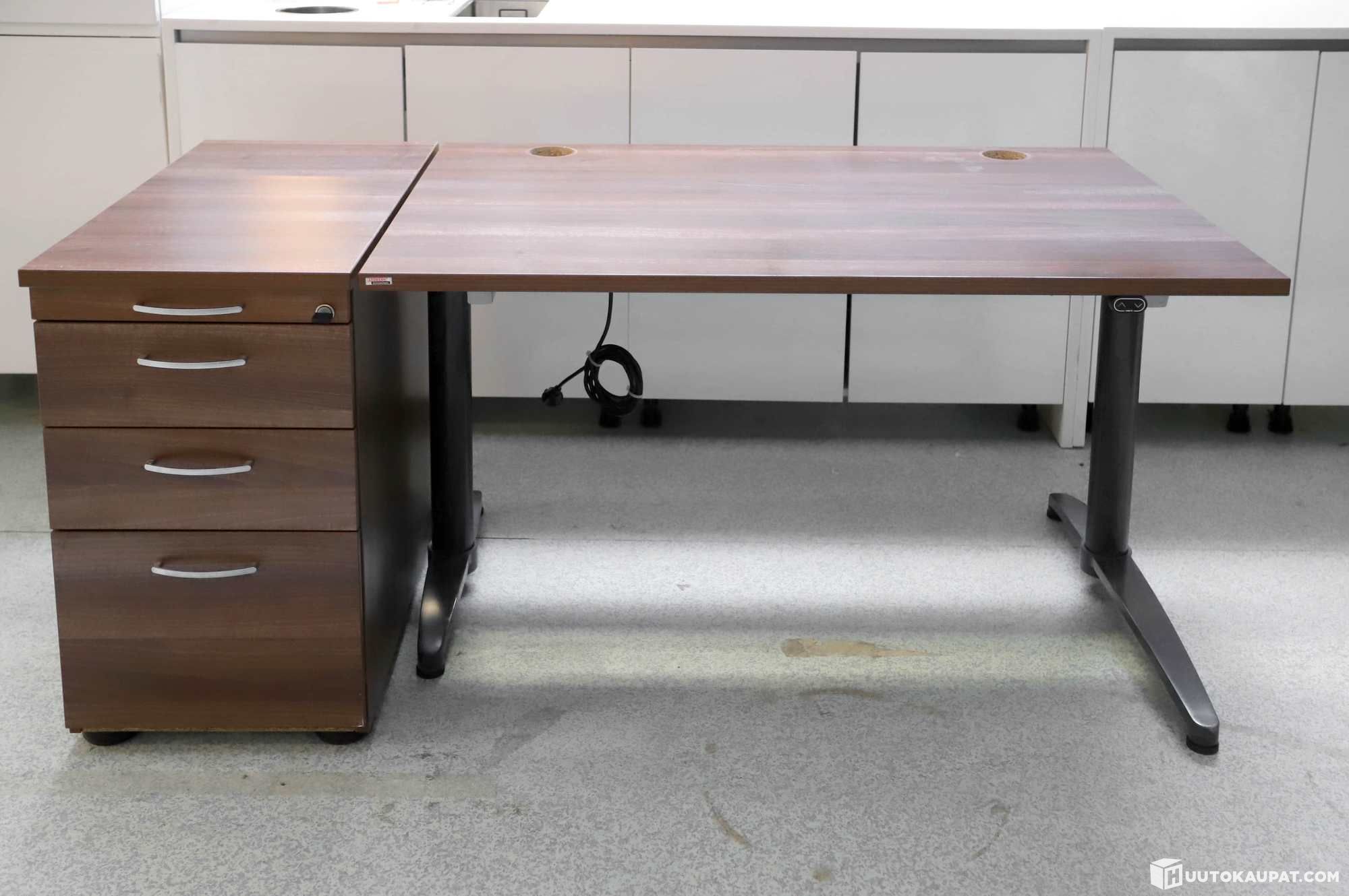 Hyväkuntoinen, kompakti sähköpöytä ja laatikosto.