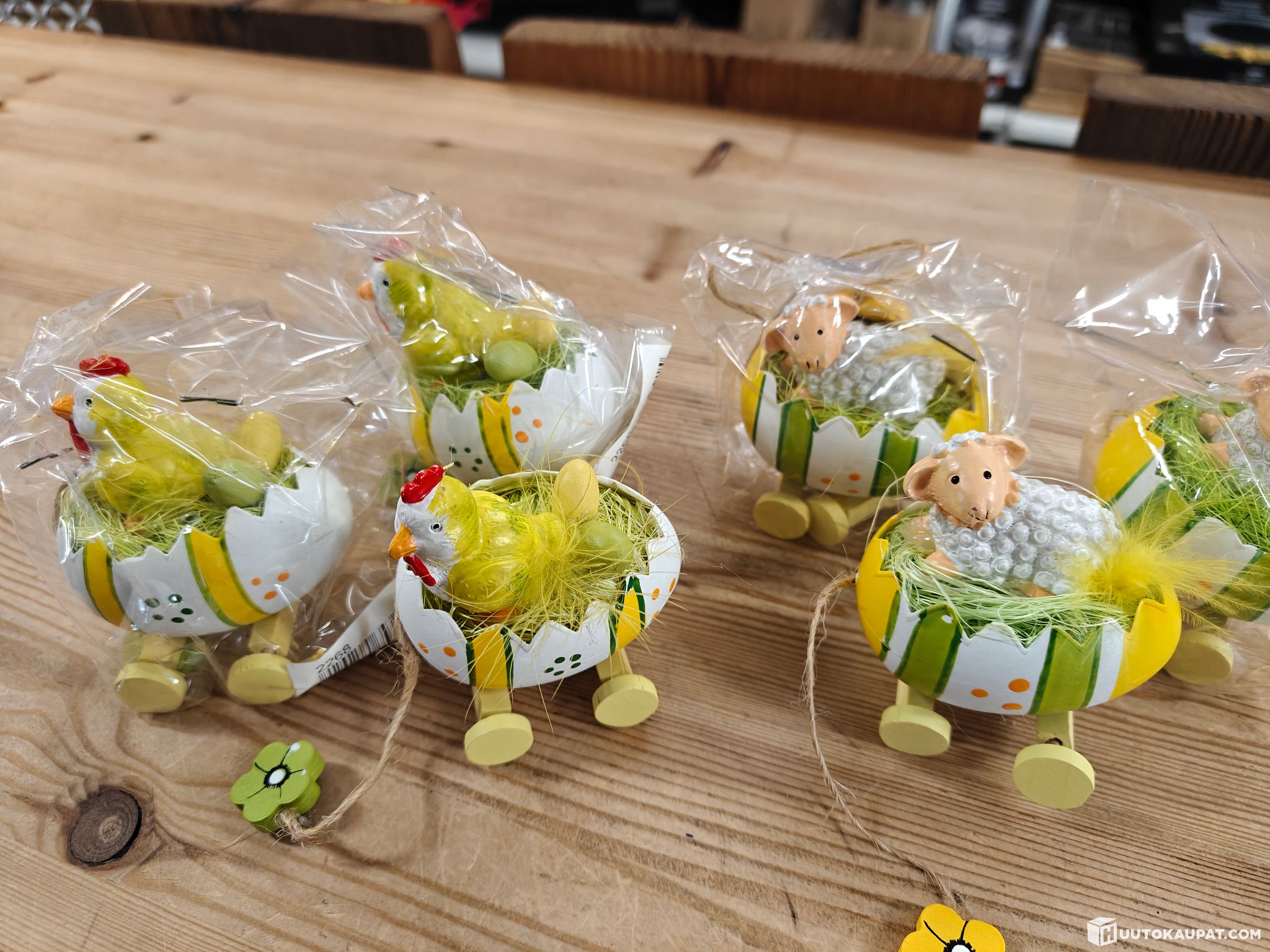 2 erilaista mallia pääsiäiskoristetta (kukko ja lammas) yhteensä 40kpl