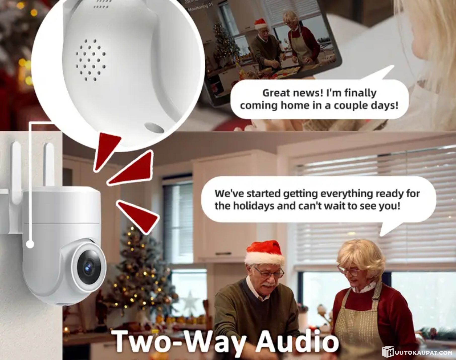 Kaksisuuntainen puhe kuvattavalle kohteelle kameran kautta.
