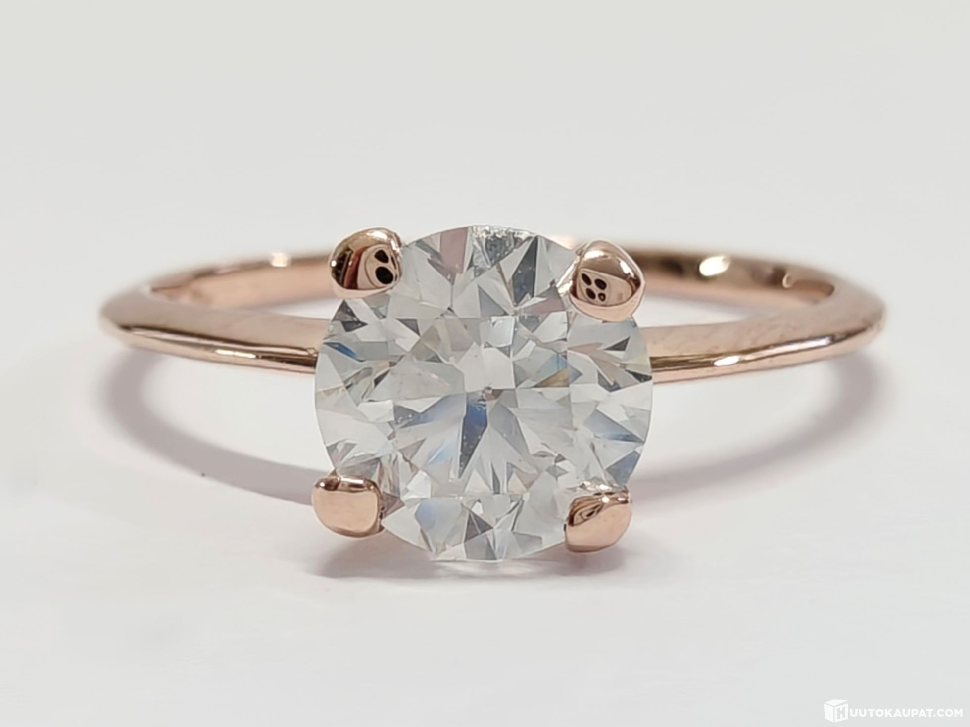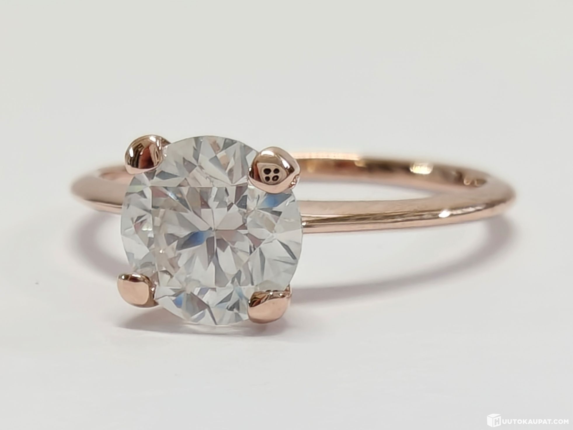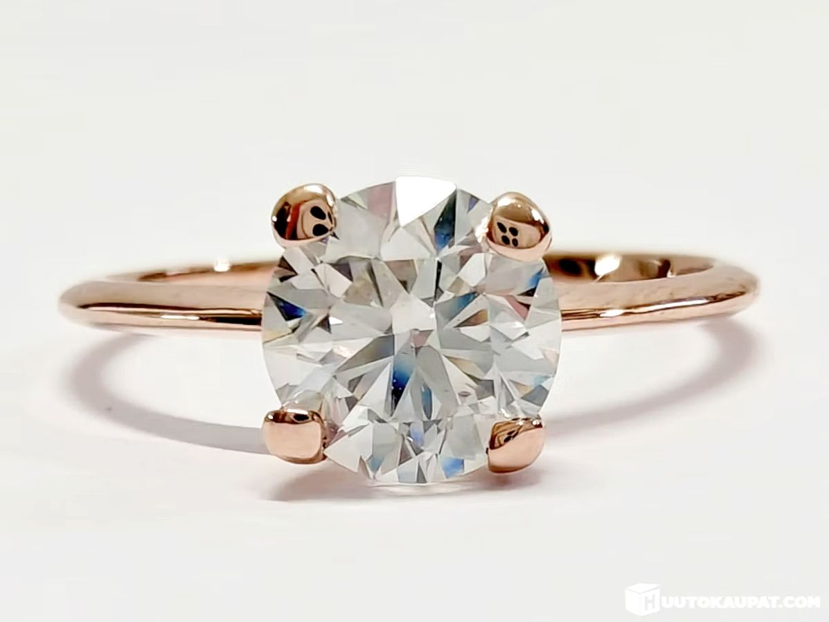 Kaunis 1,01 karaatin briljanttihiottu VS2/F -timanttisormus 585 14k ruusukultaa. Kansainvälinen jalokivitodistus.