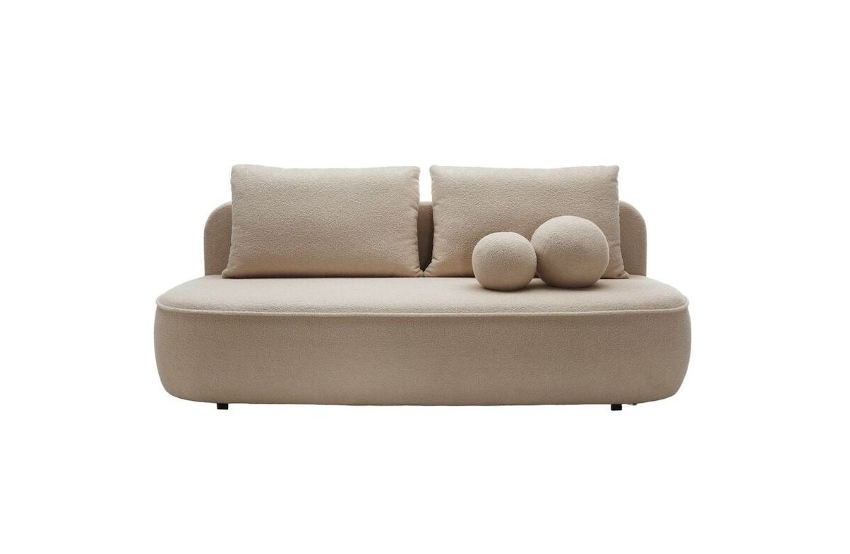 Mooda Calvin on upea vuodesohva, joka lisää pehmeyttä sisustukseen kauniilla pyöreällä muotoilullaan sekä pehmeällä ja eläväpintaisella buklee-kankaallaan. Tyylikäs vuodesohva ei pelkästään täydennä kodin eri tiloja näyttävyydellään, vaan tarjoaa myös laatua ja kestävyyttä. Vuodesohvan mukana tulee kaksi kaunista pallotyynyä, jotka täydentävät vuodesohvan pehmeää ulkonäköä ja lisäävät viimeisteltyä tunnelmaa sisustukseen.