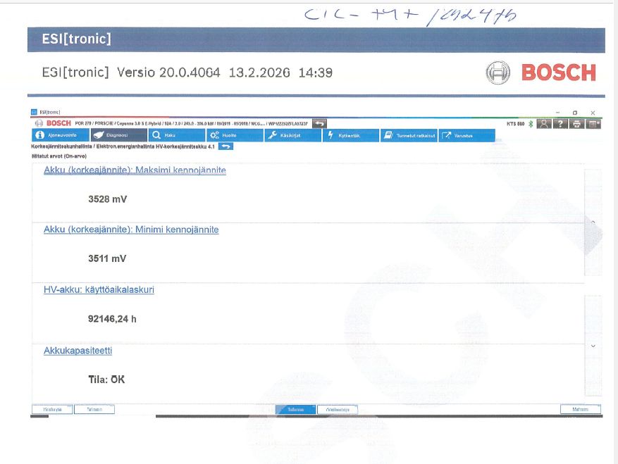 Tätä ei ole nyt käytetty diagnoosissa tai kuntotarkastuksessa vaan meidän toimesta vain katsottu koodit ja tehty huolellinen koeajo.