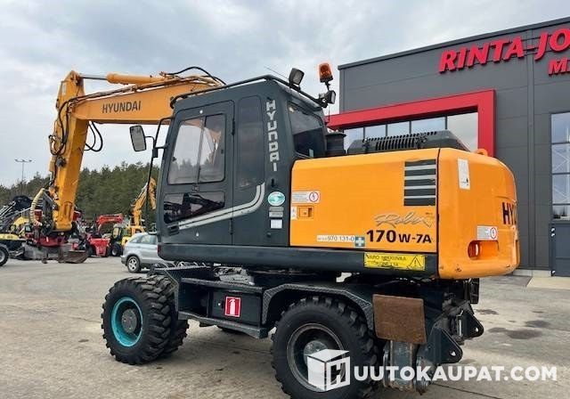 Edullinen pyöräalustainen kaivinkone.