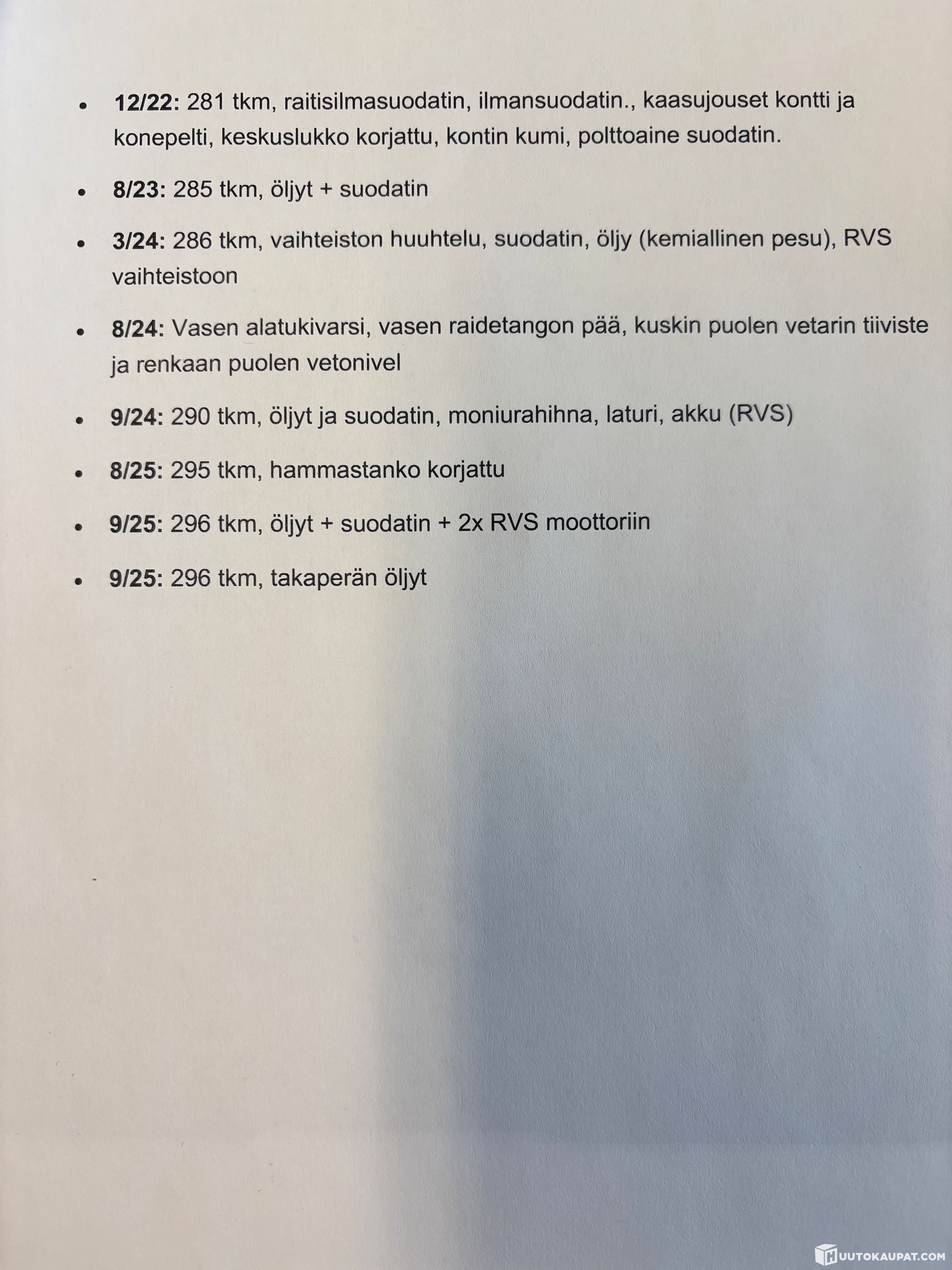 Huoltohistoria puutteellinen. Huollettu paljon itse.