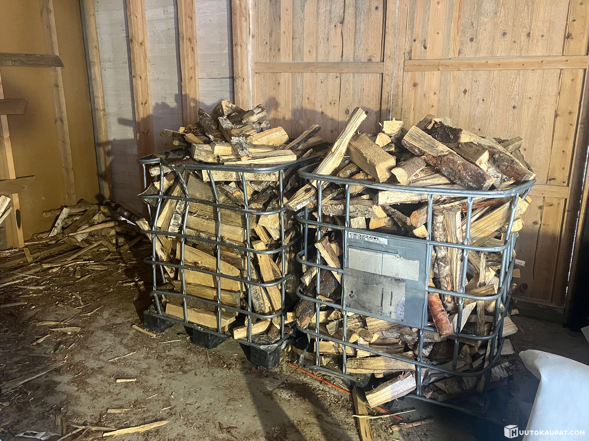 Kuivia polttopuita noin 2,5 heittokuutiota. noin 50cm pitkää sekapuuta. Ibc kontin kehikot sisältyy kauppaan.