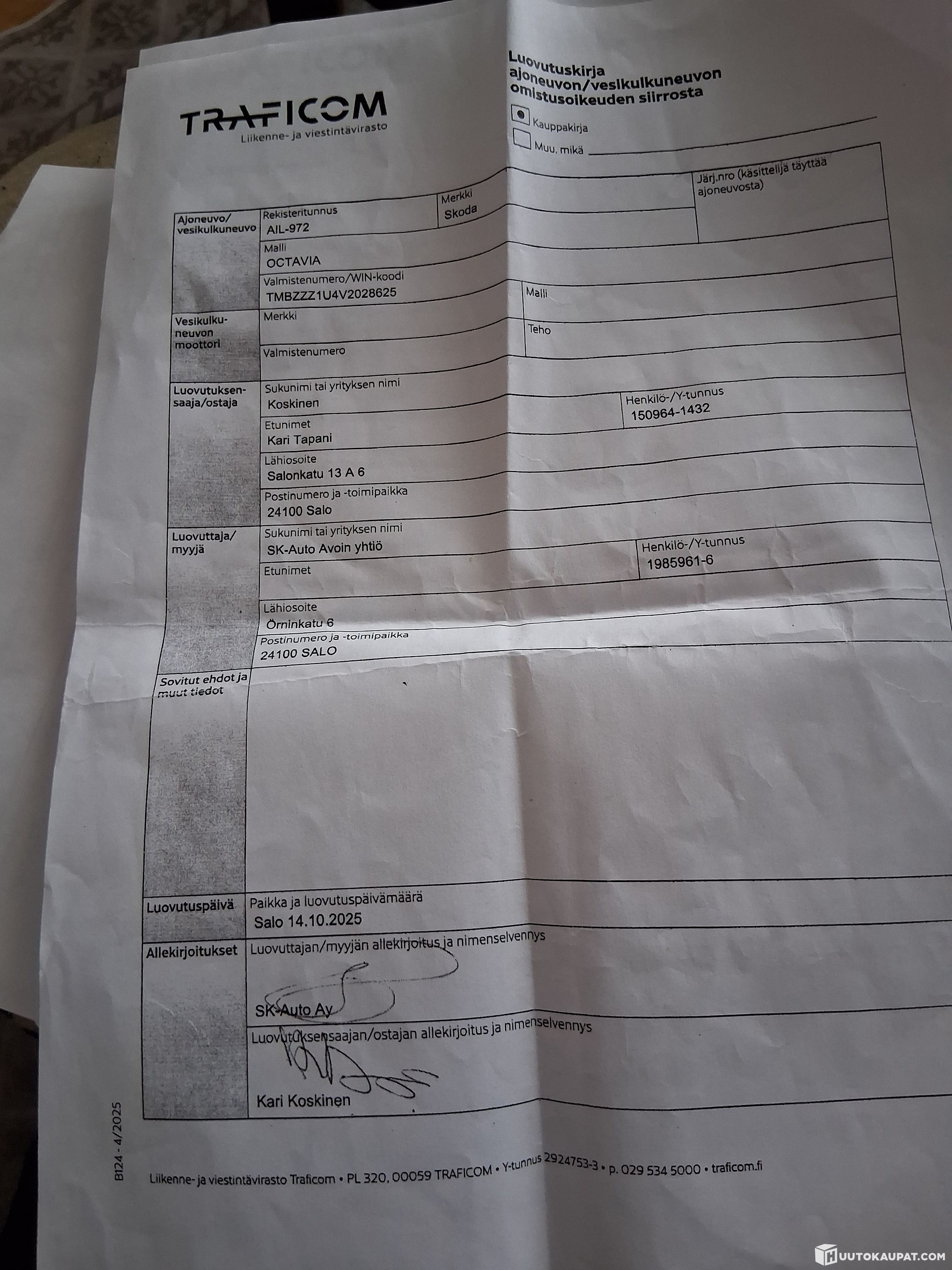 Rinta-Joupin Autoliike Oy ilmoittaa, Huutokaupat.com myy