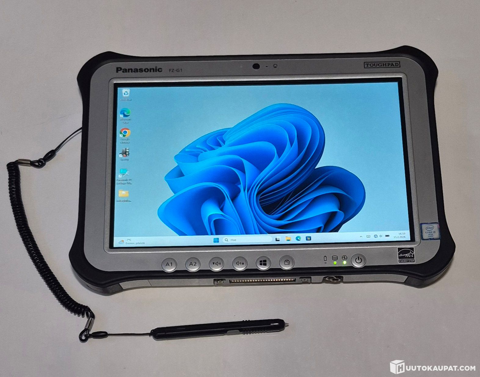 Siistikuntoinen, joitain pieniä käytönjälkiä omaava, kaikinpuolin toimiva Panasonic Toughpad FZ-G1 Mk4.