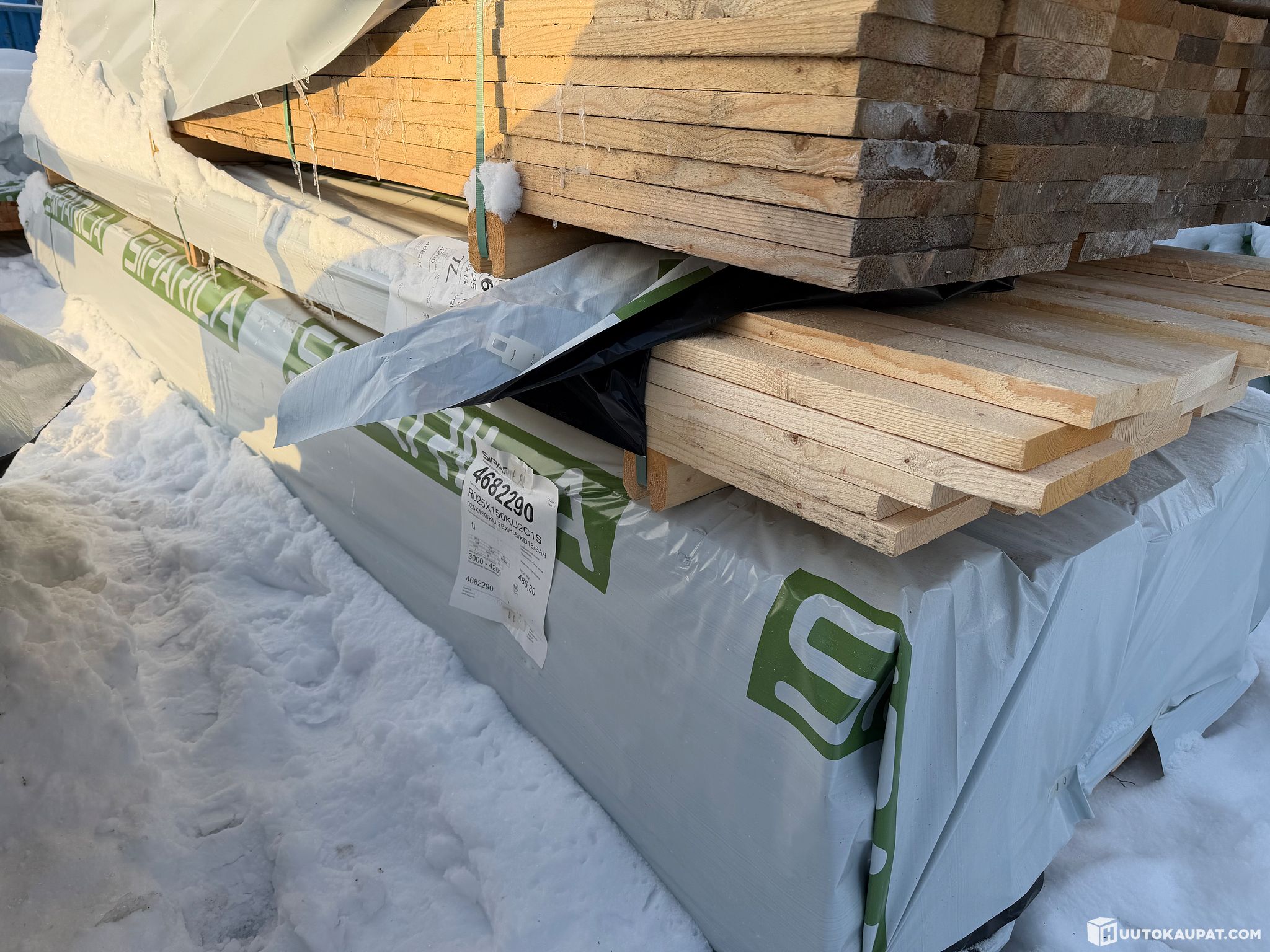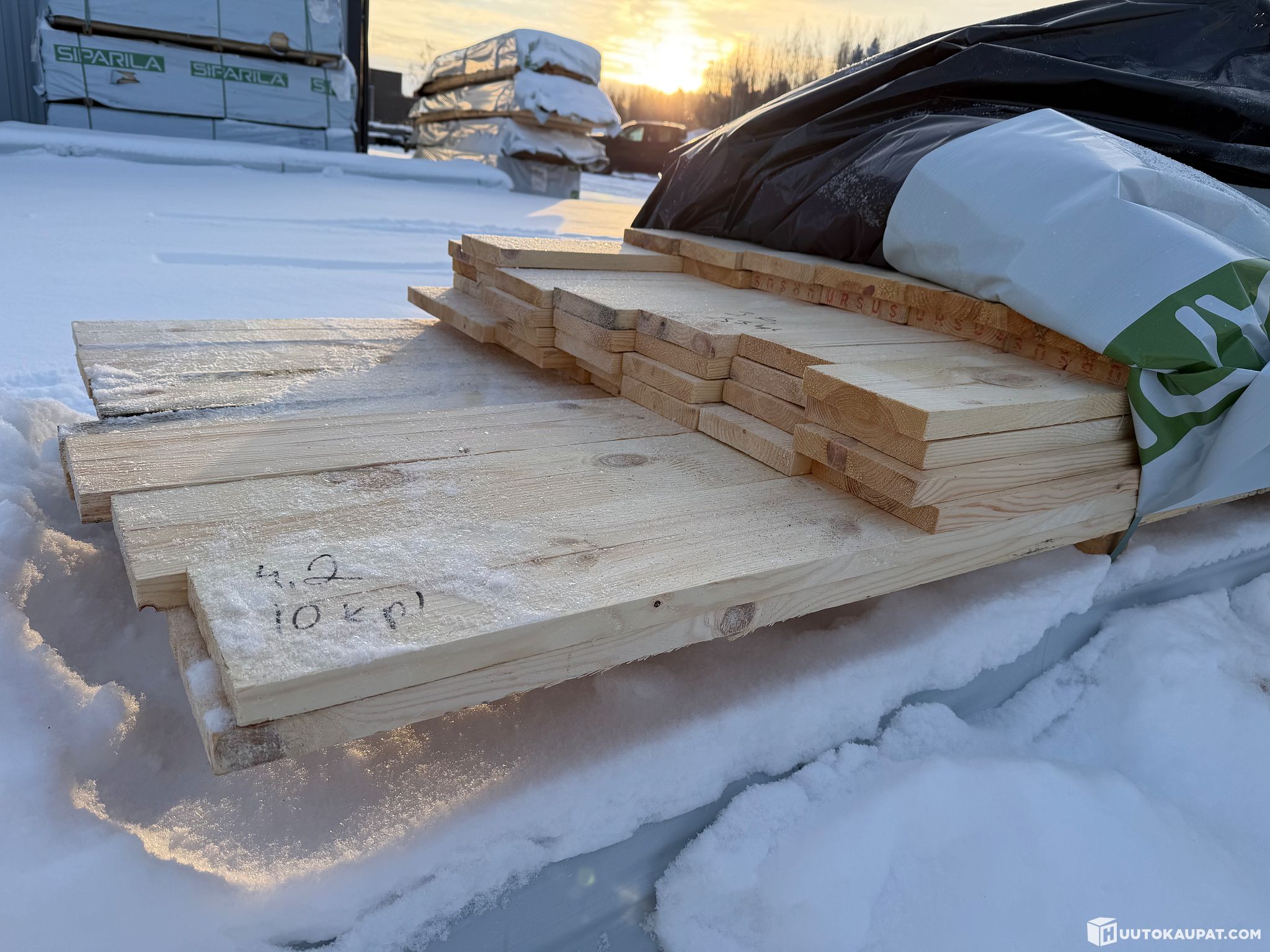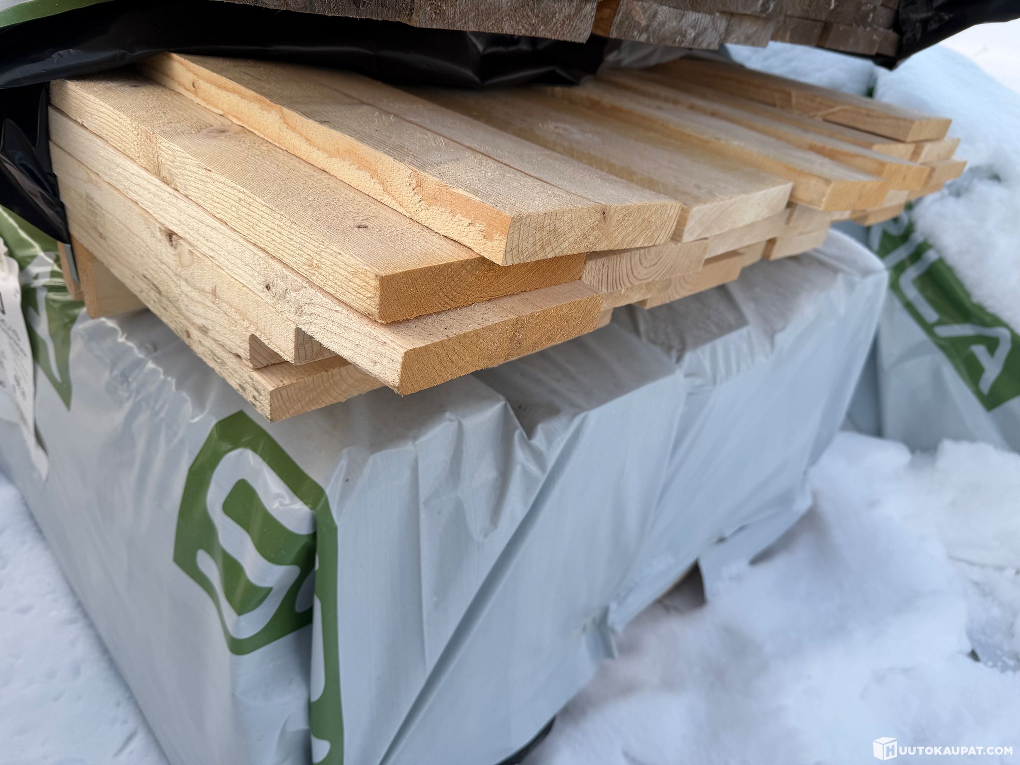 Monikäyttöistä sahatavaraa tehtaan paketissa.