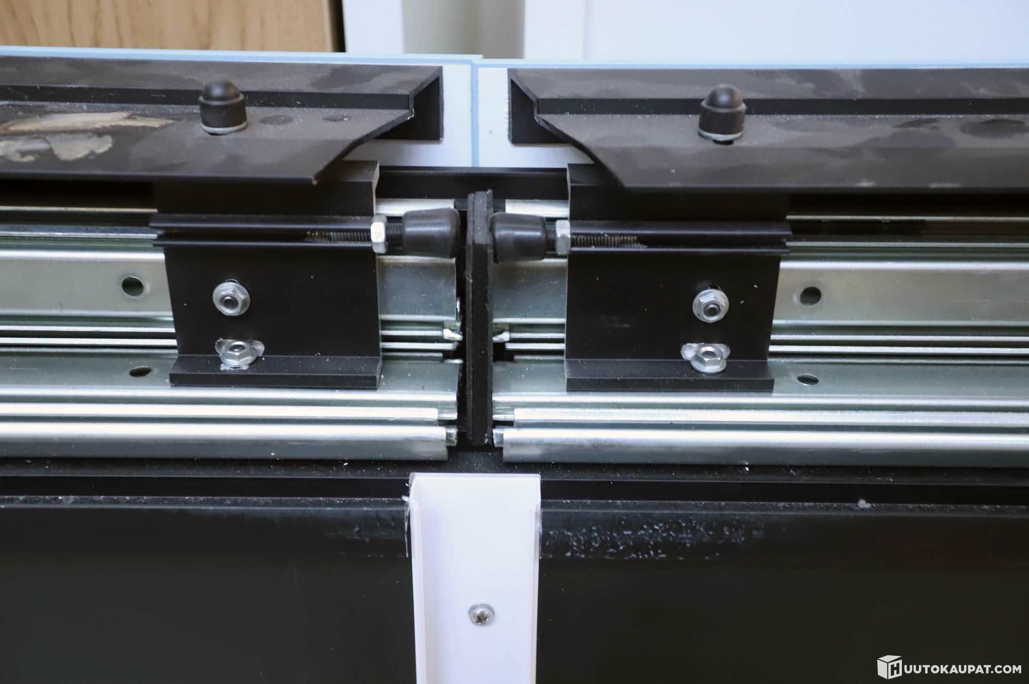 TV-/näyttökaappi sivulle liukuvilla tussitauluilla.