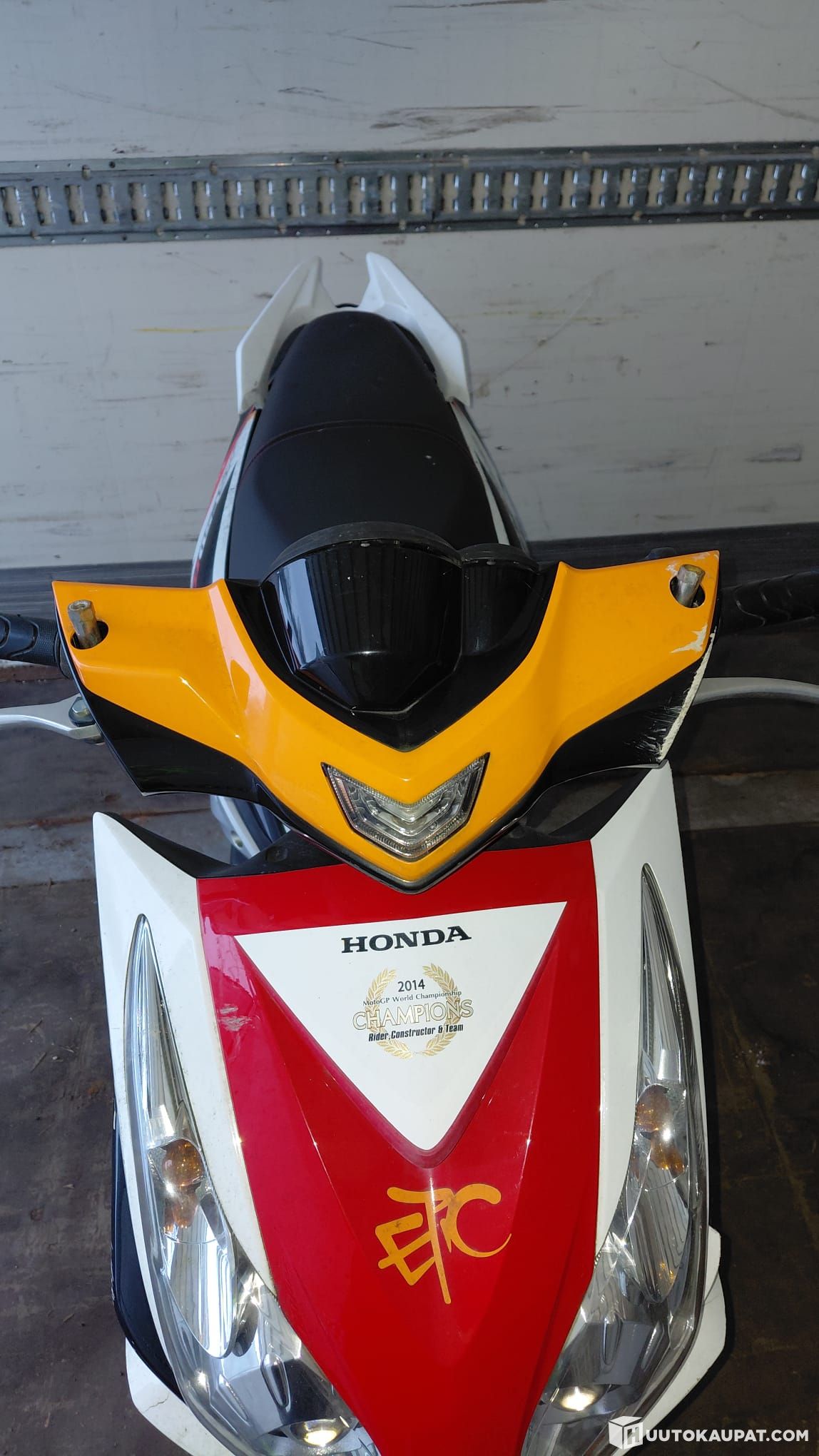 Ajoneuvo on ollut käyttämättä jonkin aikaa, ja siinä on ulkoisesti paljon kolhuja sekä naarmuja. Ajoneuvo on ollut opetuskäytössä, joten sillä on myös kaaduttu todennäköisesti useamman kerran. Ei käynnisty, vika voi olla akussa tai jossain muualla. Ajoneuvolle ei ole tehty kuntotarkastusta, ja se myydään korjattavaksi tai varaosiksi.