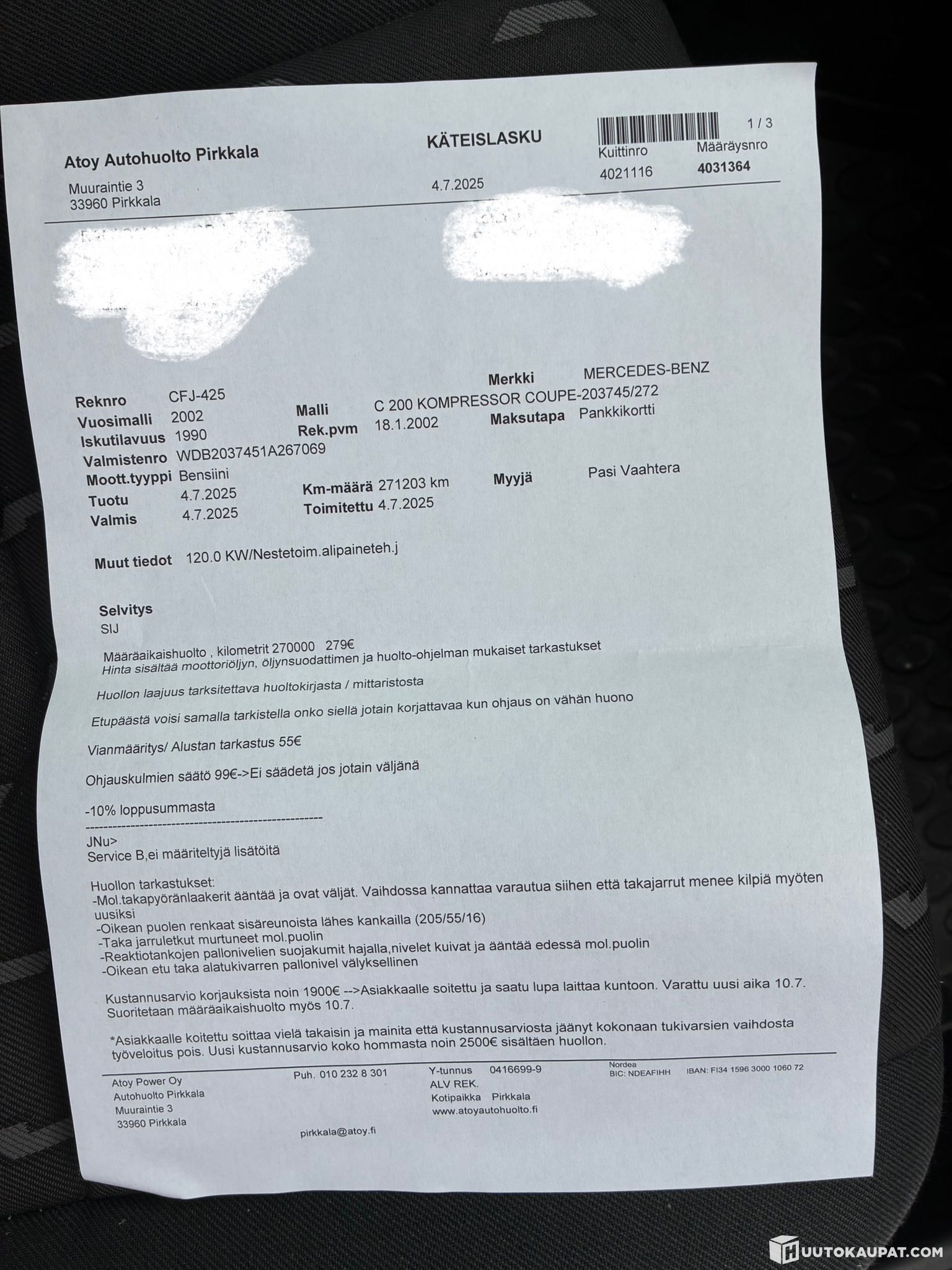 -Tästä hyvin huollettu ja hyvällä pidolla ollut Mersu! Varmasti pätevä auto kun korjaa tuon vuodon.