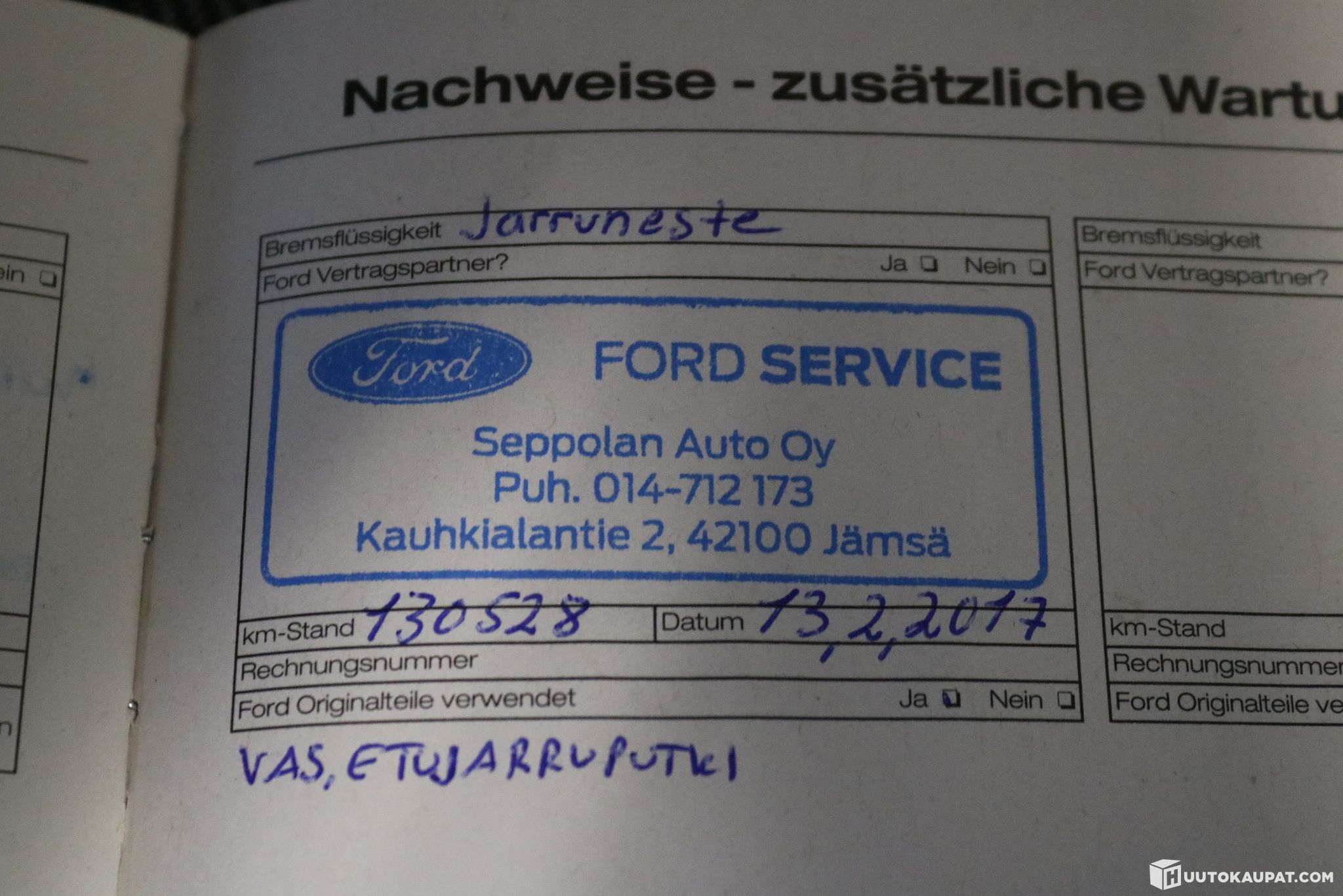 Huoltokirja, Viimeisin huolto: 8.1.2026 / 305706km