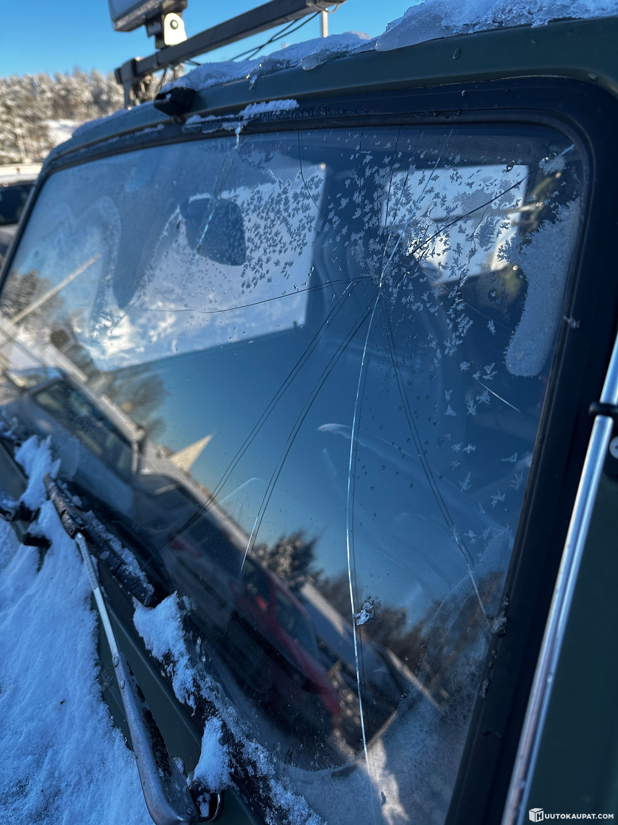 Apukuljettajan penkin noja ei lukitu ja tuulilasissa halkeama