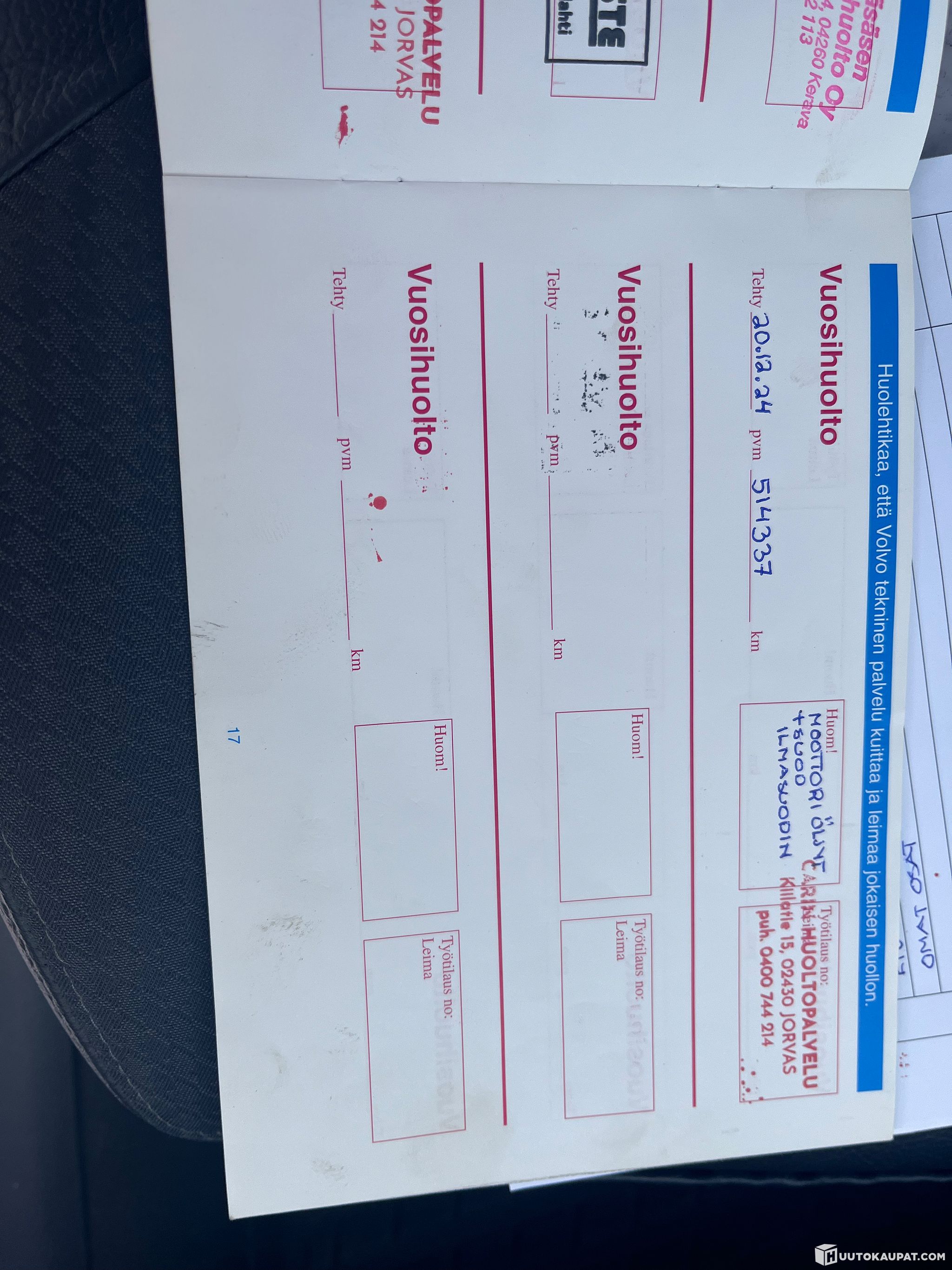 Huoltokirjan kuvat myös liitteenä.