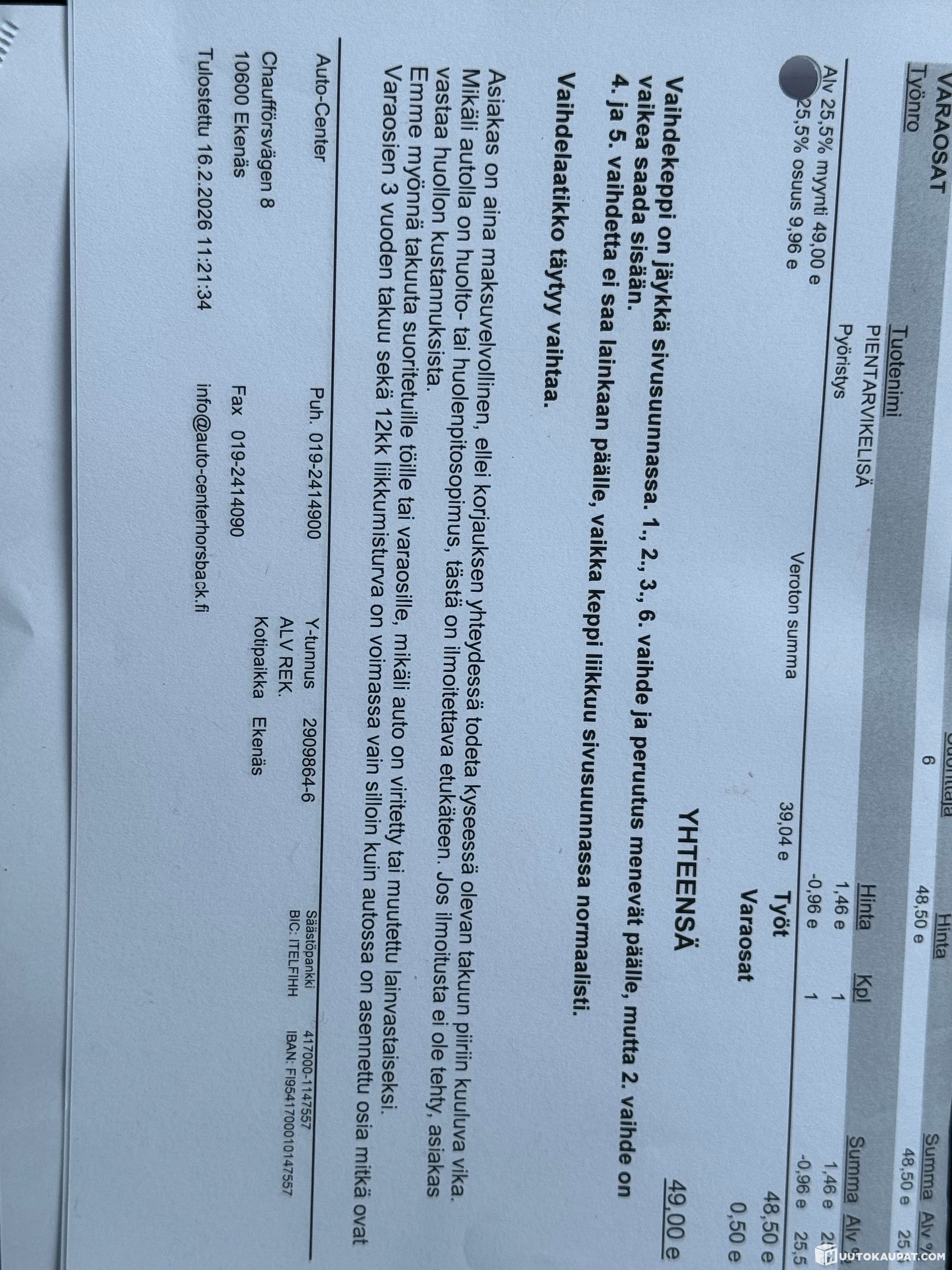 Varsinais-Suomen Autocenter Oy ilmoittaa, Huutokaupat.com myy